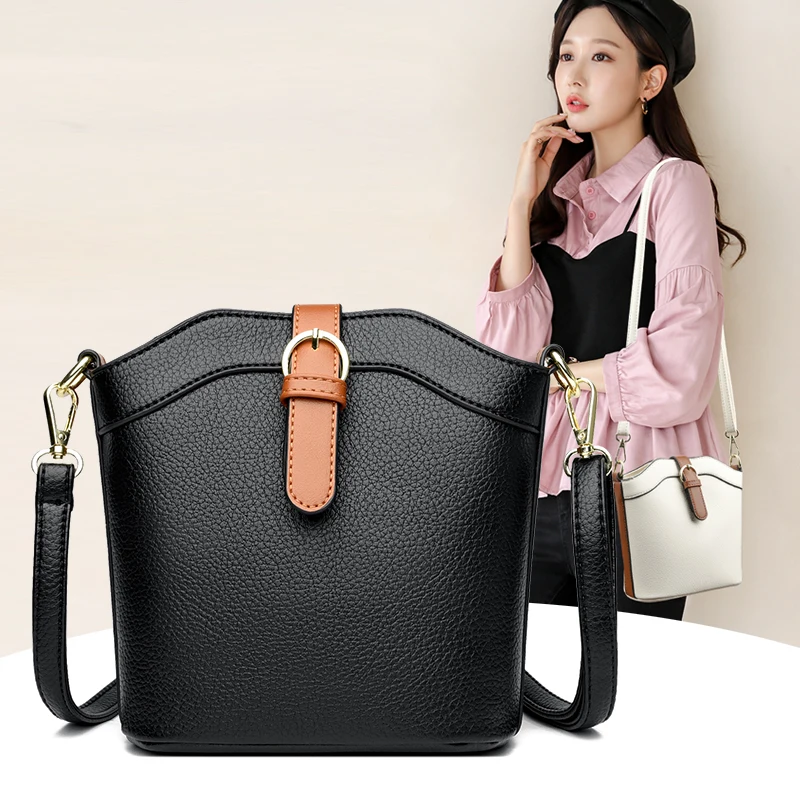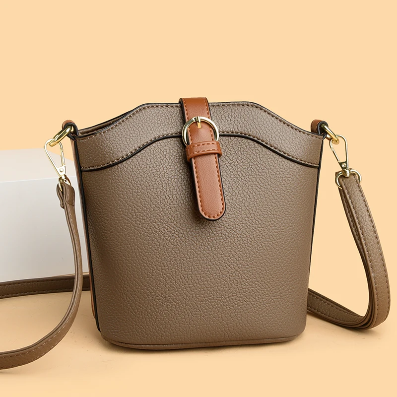 Designer Vintage Popular Ladies Women Crossbody Shoulder Hand Bags Fashion Casual Large Capacity Cowhide Leather Bucket Bag 2026