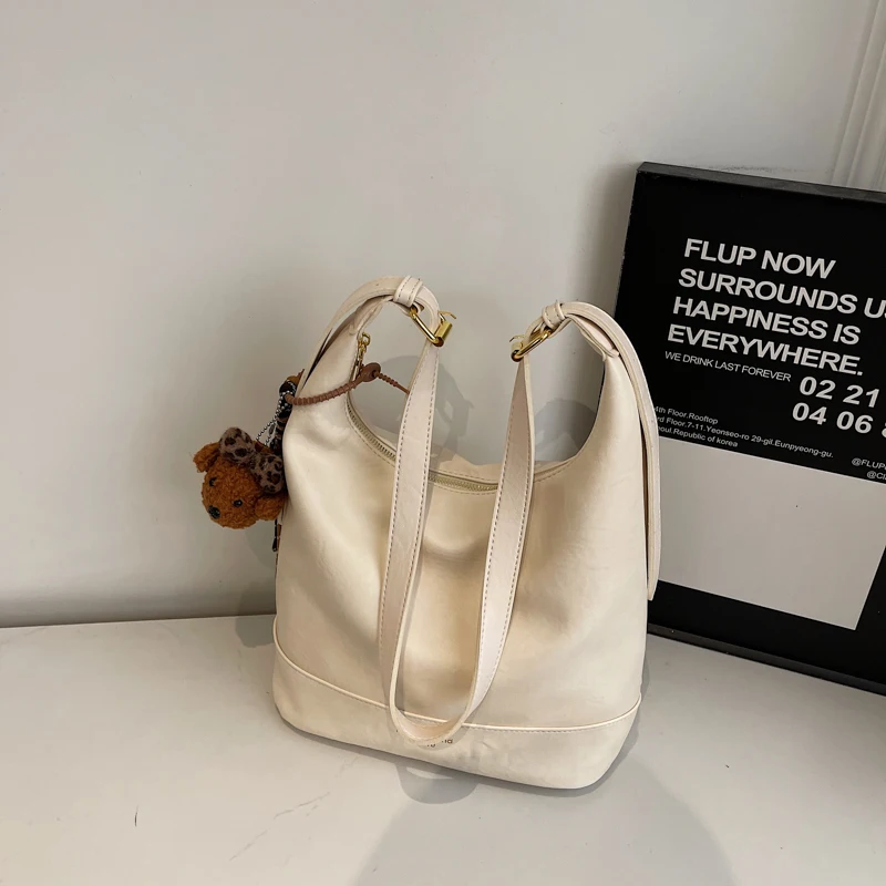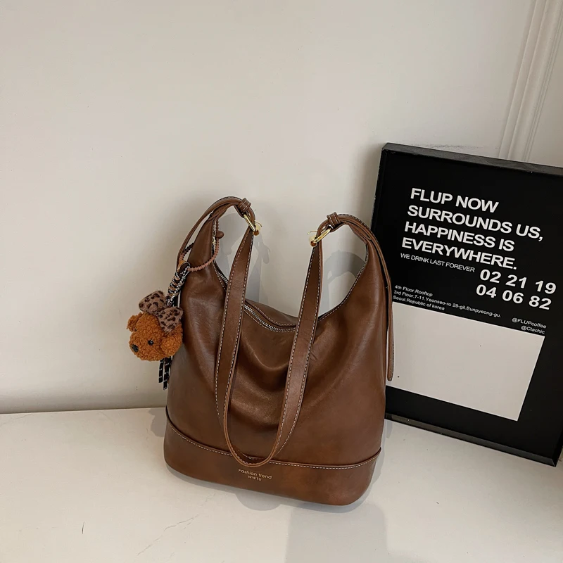 Designer Vintage Popular Ladies Women Crossbody Shoulder Hand Bags Fashion Casual Large Capacity Cowhide Leather Bucket Bag 2026