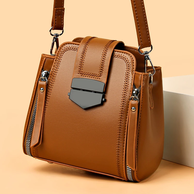Designer Vintage Popular Ladies Women Crossbody Shoulder Hand Bags Fashion Casual Large Capacity Cowhide Leather Bucket Bag 2026