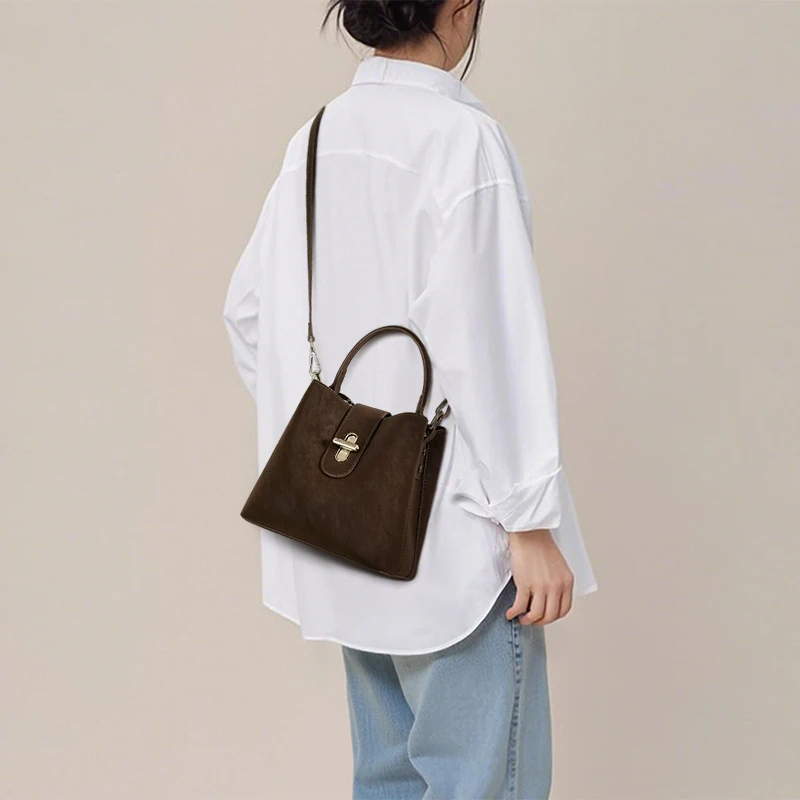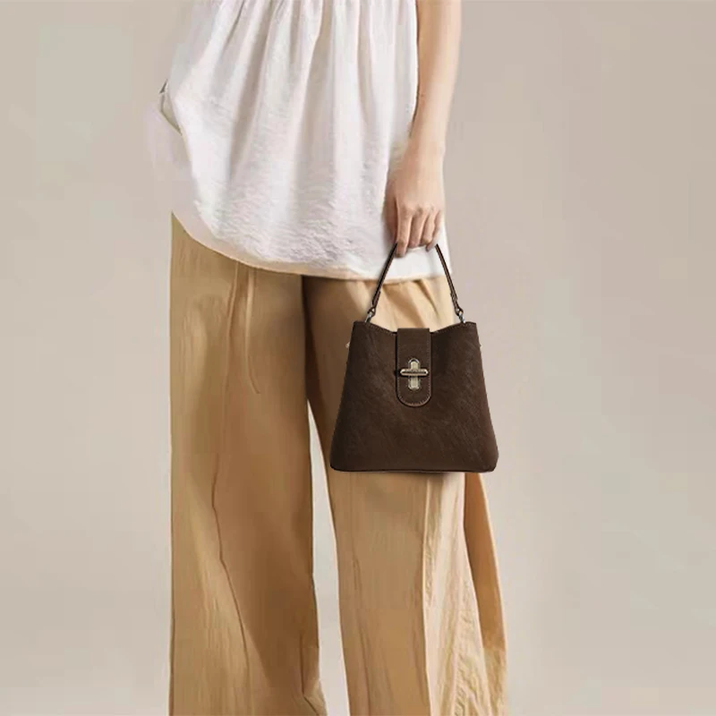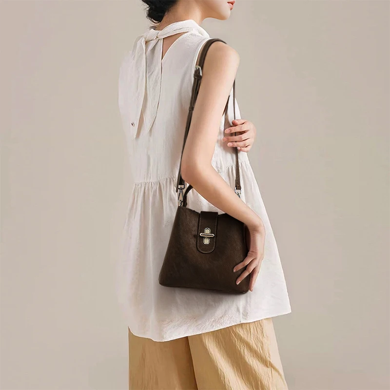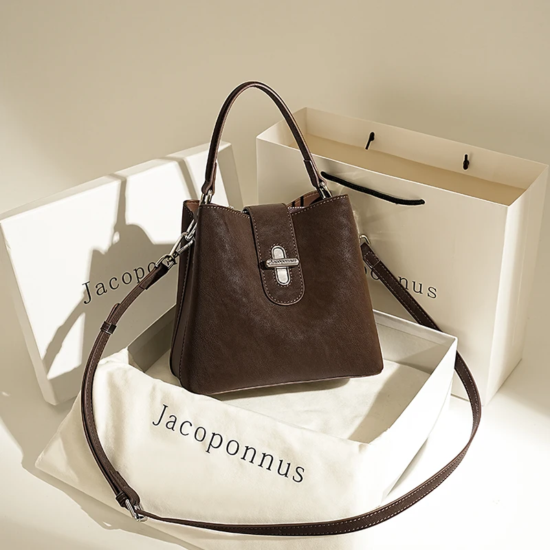 Designer Vintage Popular Ladies Women Crossbody Shoulder Hand Bags Fashion Casual Large Capacity Cowhide Leather Bucket Bag 2026