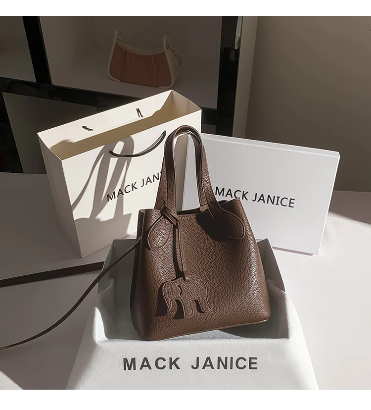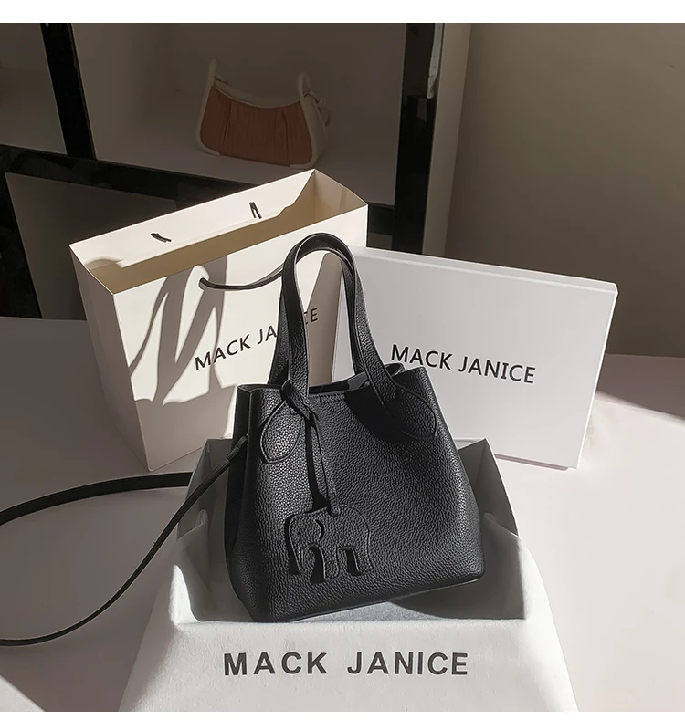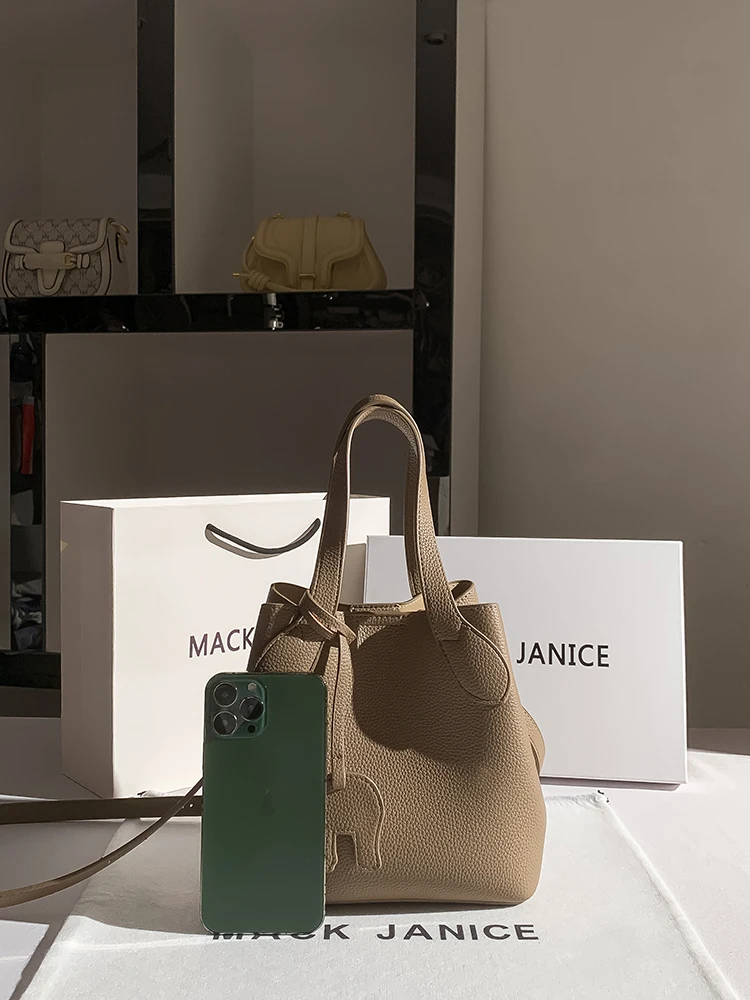Newly Designed Niche Jacoponnus JN 8303 Large-capacity Open Closure Genuine Leather Women's Bucket Bag Fashionable Handbag 2026