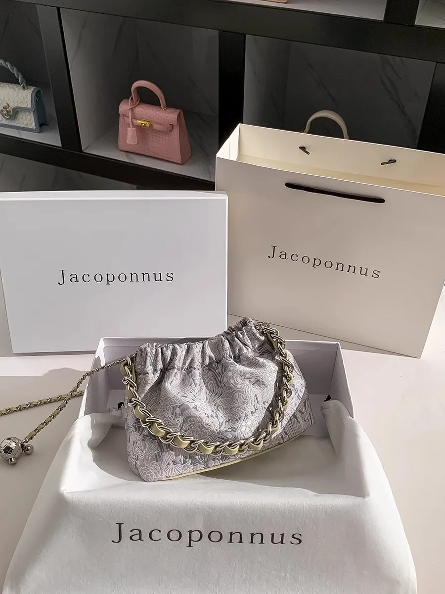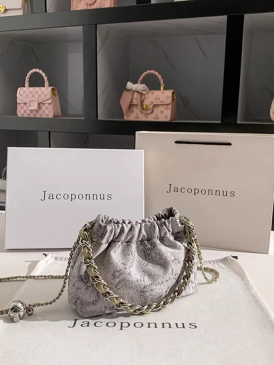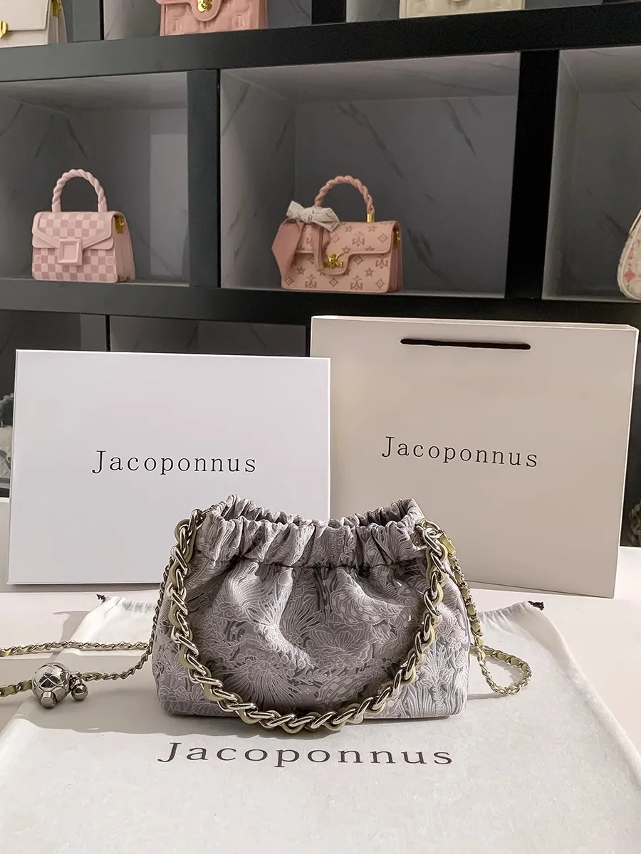Fashionable Ladies' Silk-Textured Waterproof Eco-Friendly Messenger Bag Open Closure Chain Accessory Thread Pattern Girls' Bag