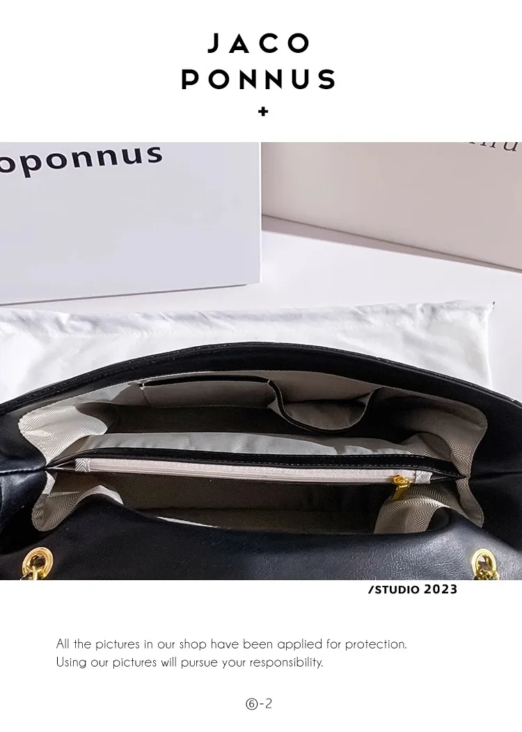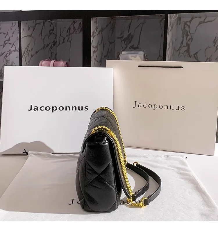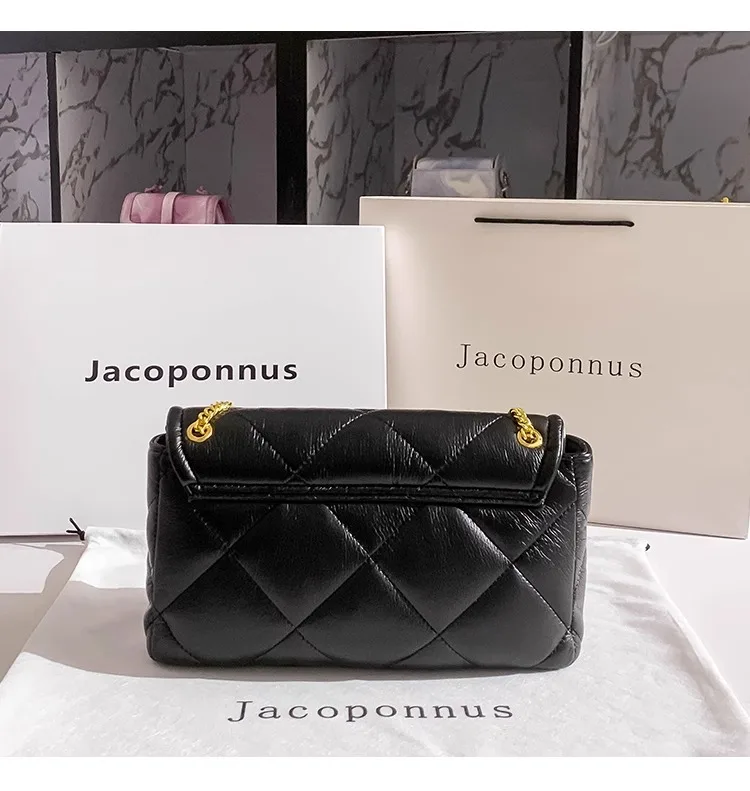Jacoponnus 2026 Ladies PU Handbag Fashionable Black Summer Shoulder Bag with Zipper and Open Closure Thread Pattern