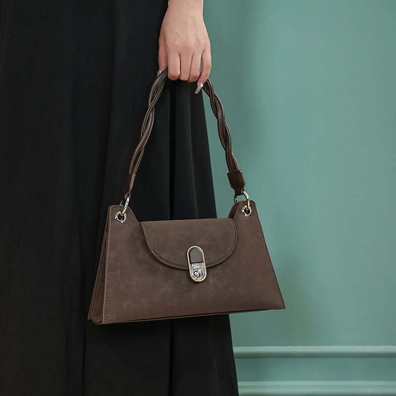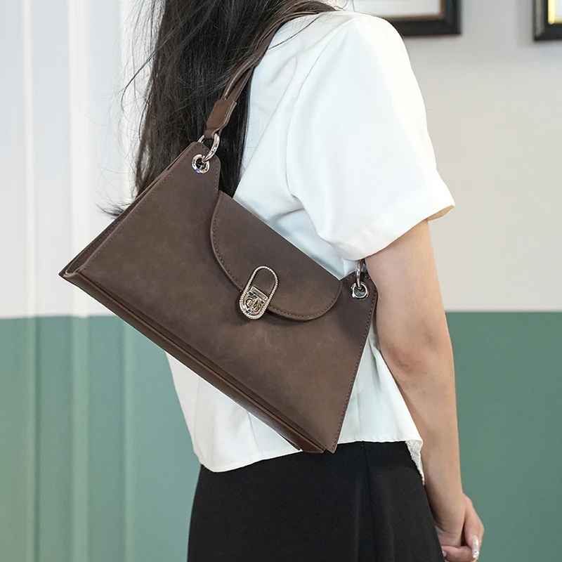 2026 Autumn Luxury Single Shoulder Brown Genuine Leather Envelope Bag for Women High-End Fashionable Underarm Zippered Design