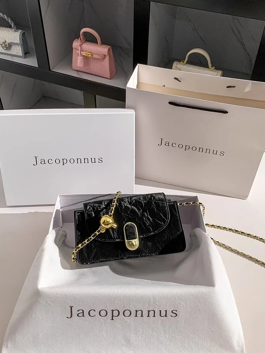 PU One-Shoulder Crossbody Bag Simple Texture Female Chain Lady's Summer Western Style Small Shoulder Bag Net Red Lock Decoration