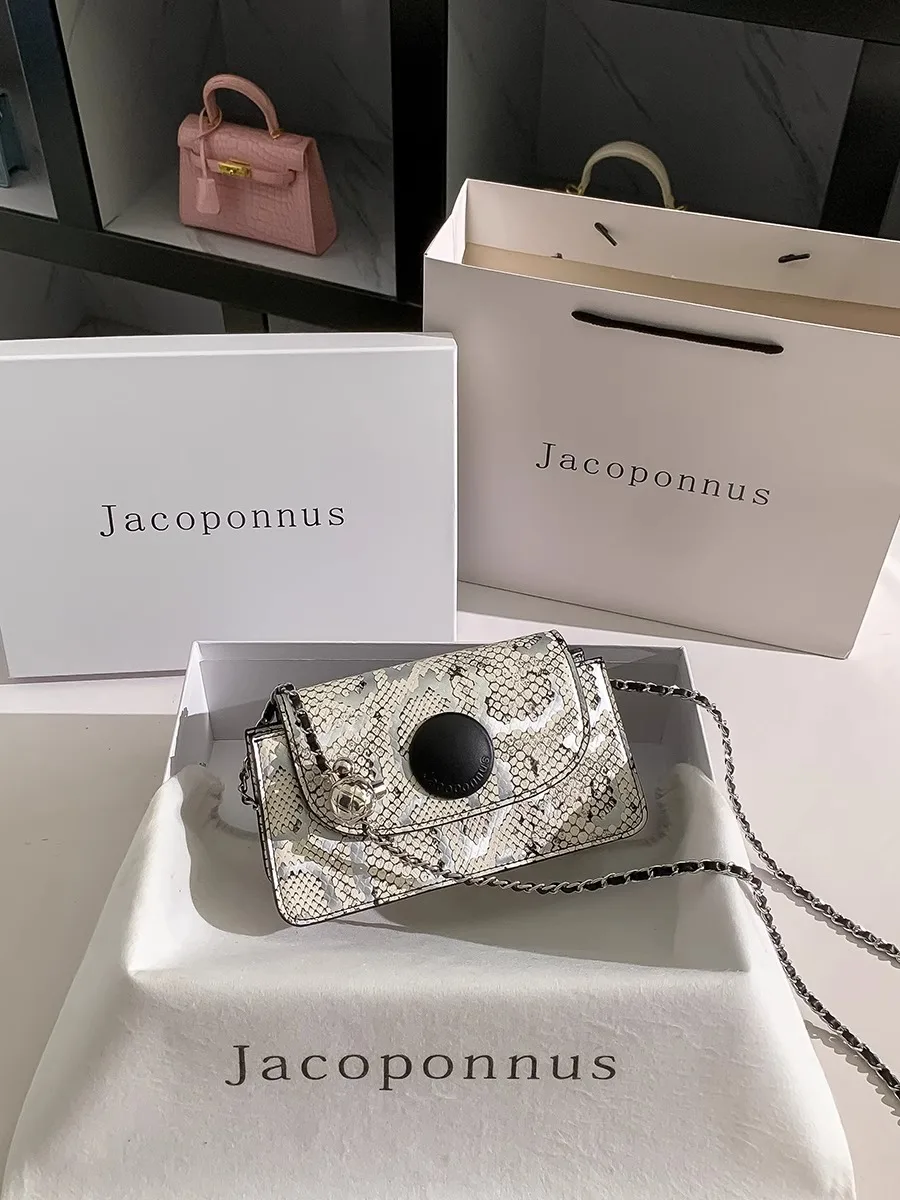 Luxury Designer Women's PU Leather Snake Skin Tote Bag Customized Satchel Purse Chain Strap Fashionable Messenger Autumn Winter