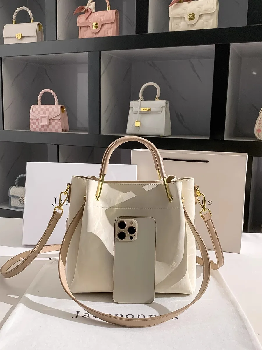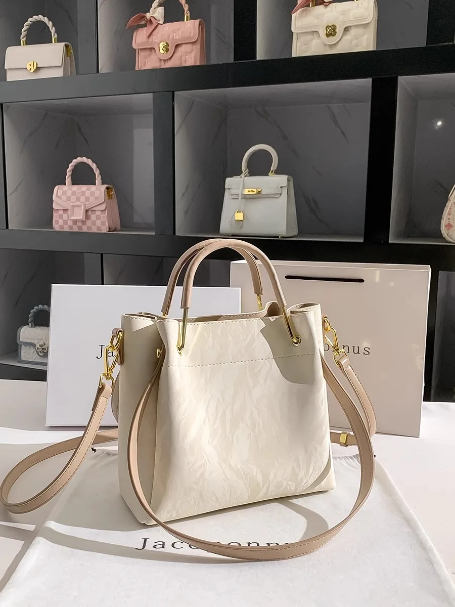 Designer Vintage Popular Ladies Women Crossbody Shoulder Hand Bags Fashion Casual Large Capacity Cowhide Leather Bucket Bag 2026