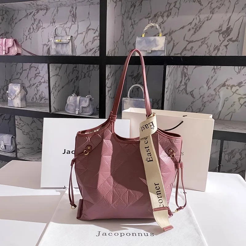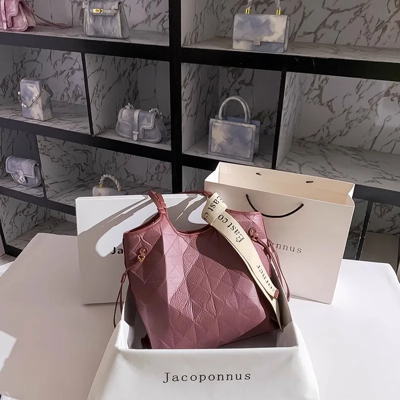 Designer Vintage Popular Ladies Women Crossbody Shoulder Hand Bags Fashion Casual Large Capacity Cowhide Leather Bucket Bag 2026