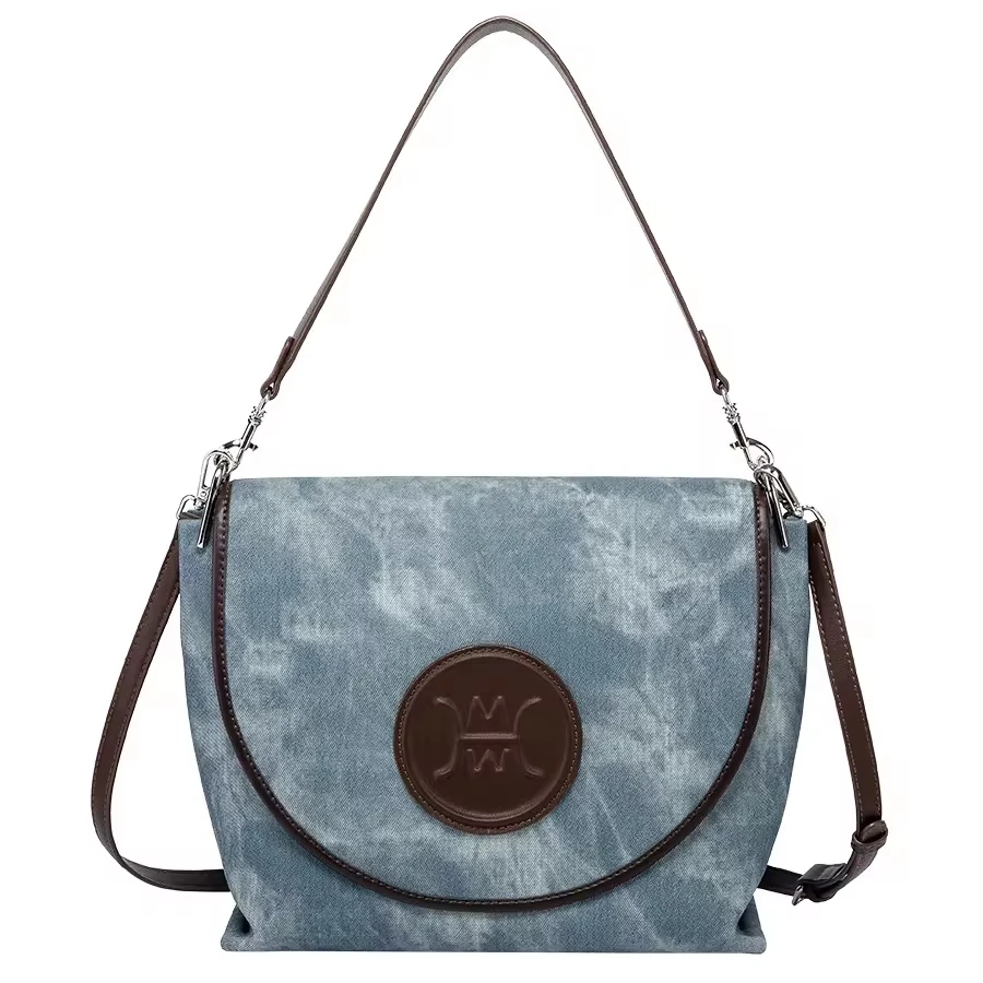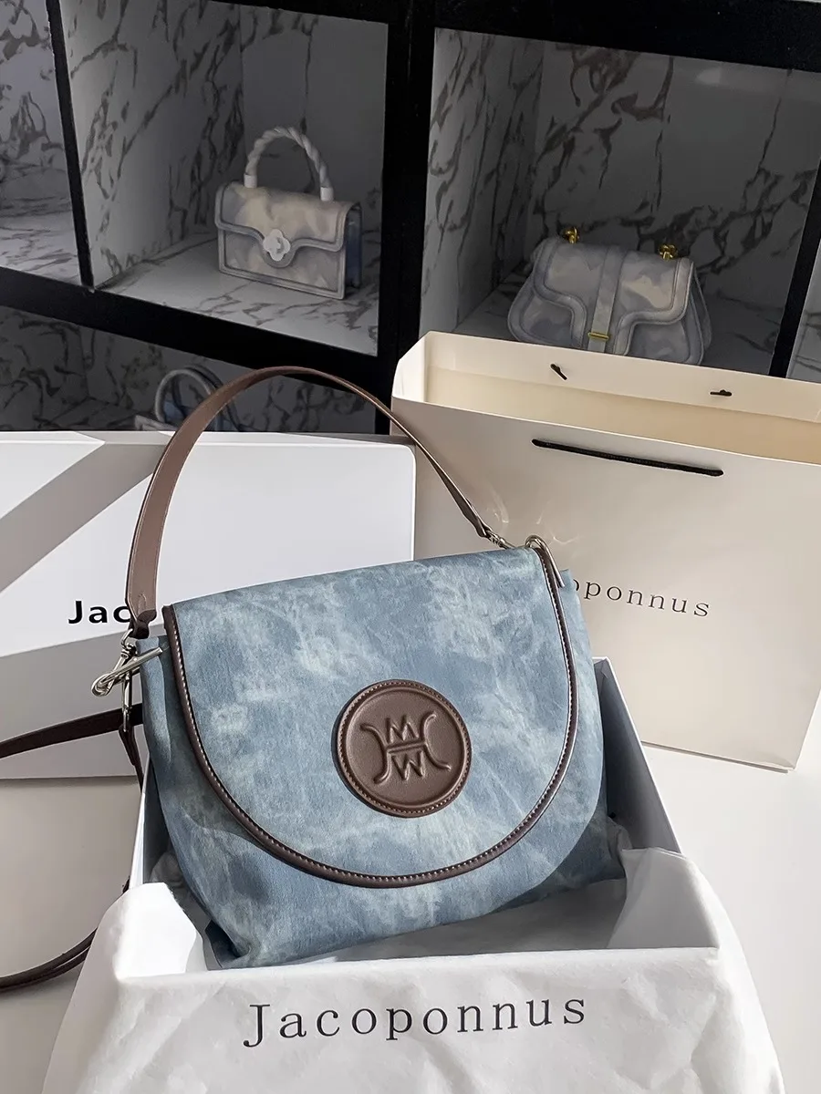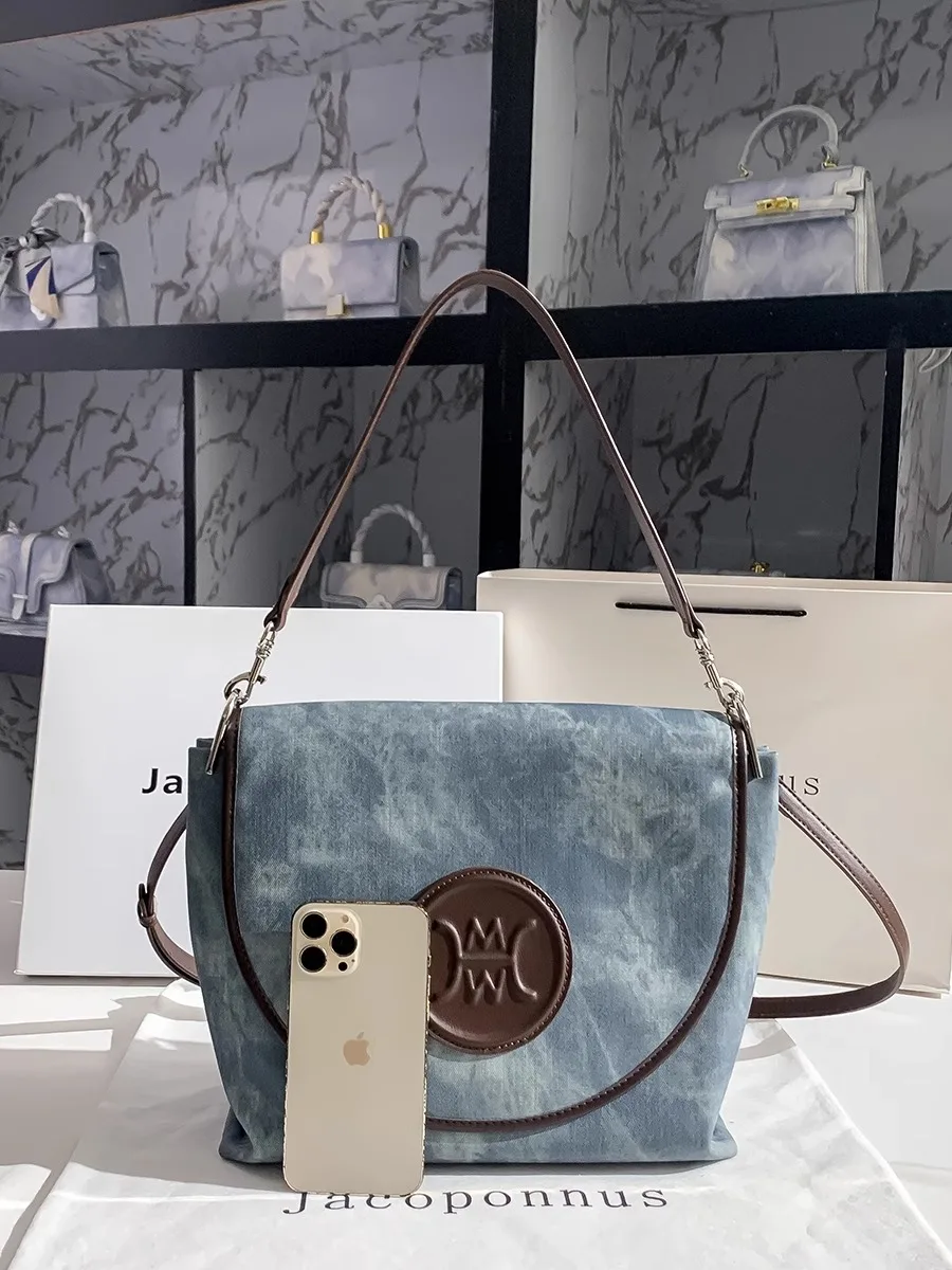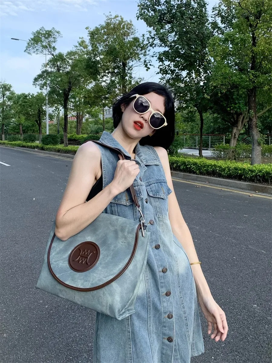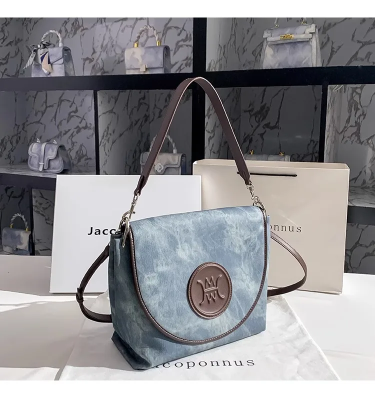 2026 Women's Luxury Minimalist Retro Handbag Large Diagonal Shoulder Nylon Denim Blue with PU for Summer and Autumn