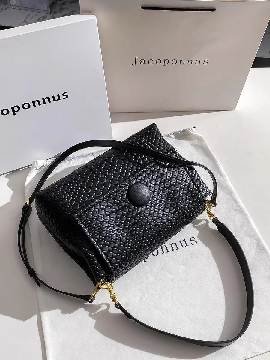 Designer Vintage Popular Ladies Women Crossbody Shoulder Hand Bags Fashion Casual Large Capacity Cowhide Leather Bucket Bag 2026