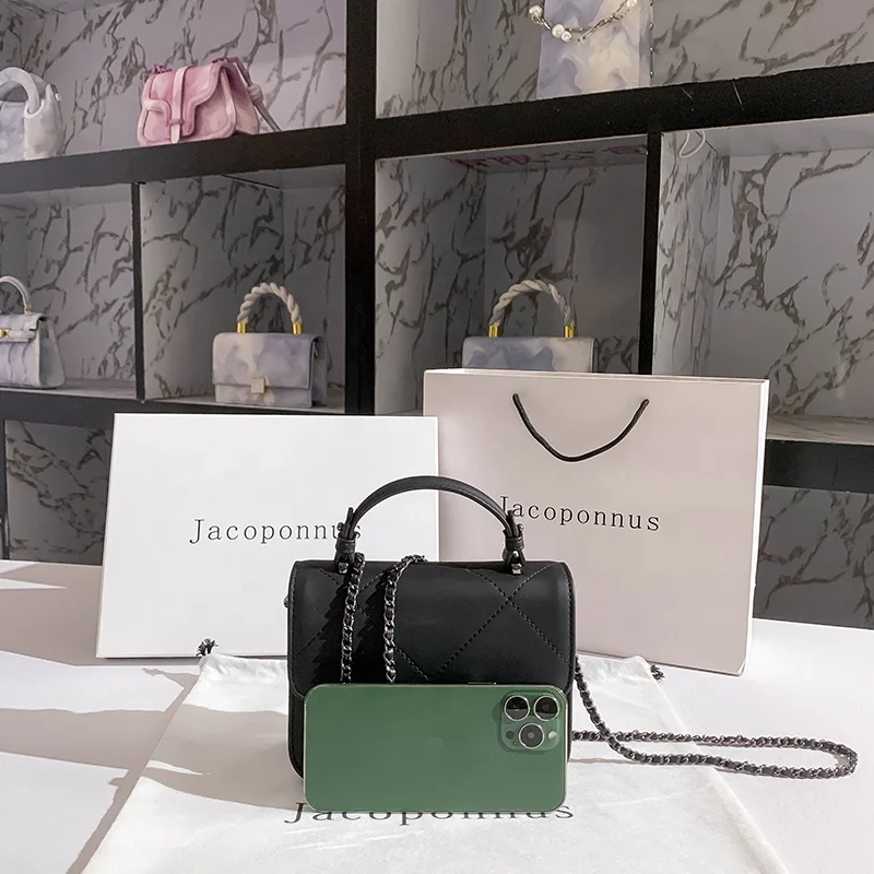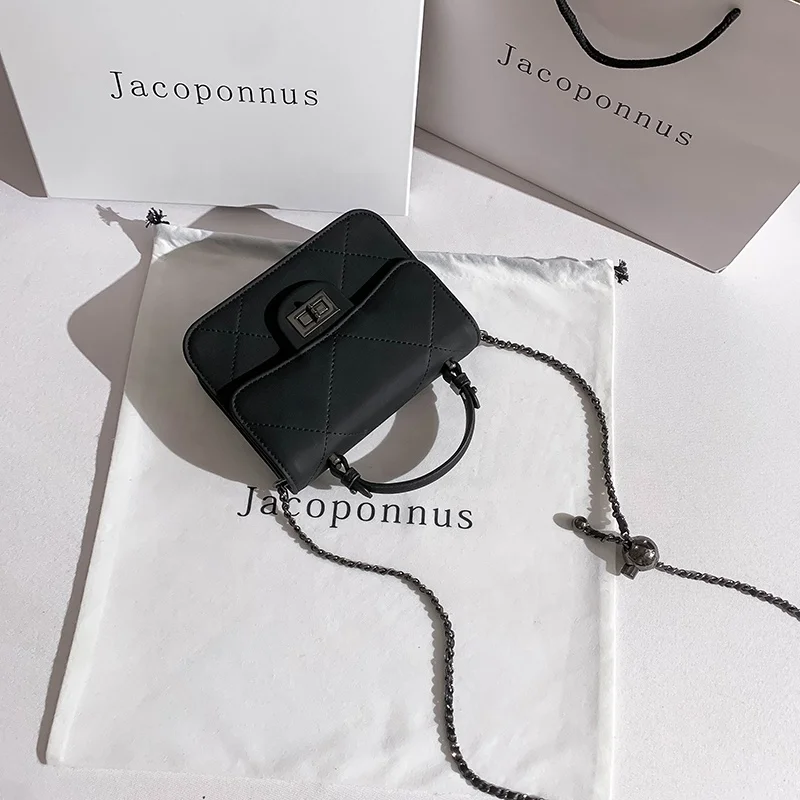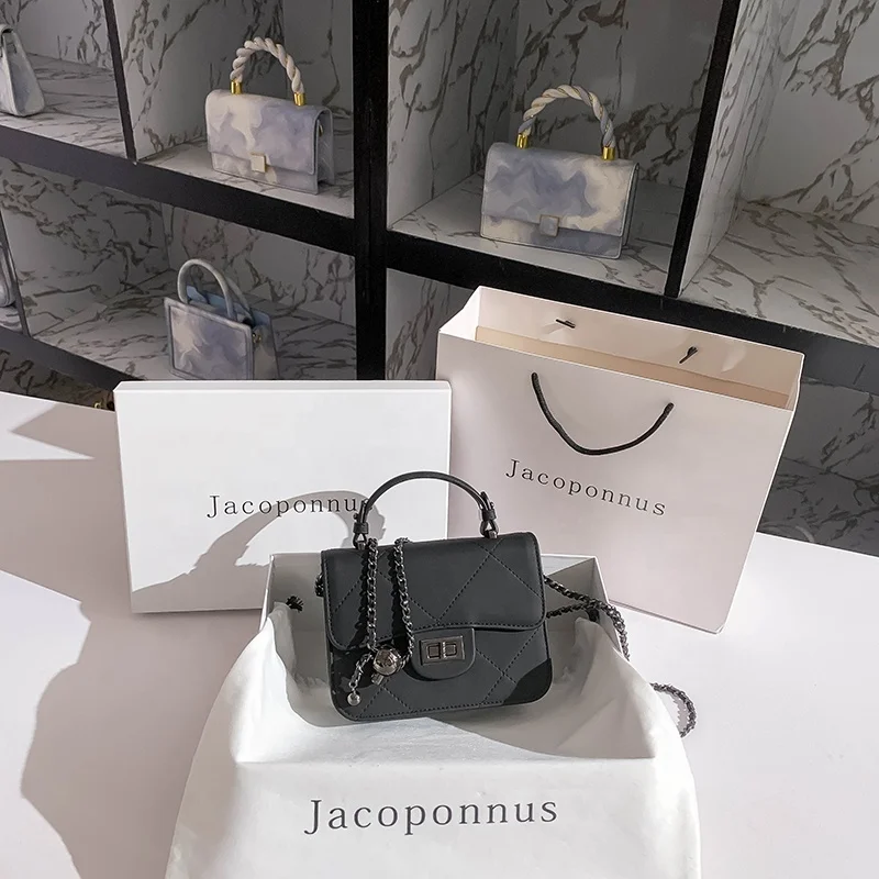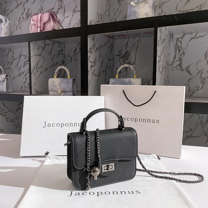 2023 Ladies Small Fragrance Handbag Guangzhou Factory's New Cross-Body Bag with Golden Ball Ringer Chain Low Order PU Material