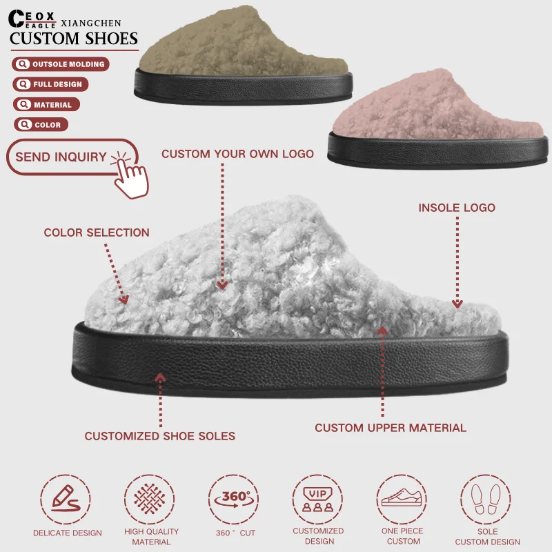 Custom Women's Winter Warm Fluffy Faux Fur Sandals Soft Chaussons En Peluche with Logo House Shoes
