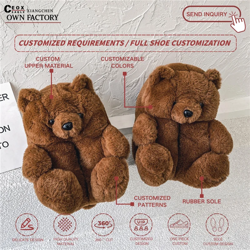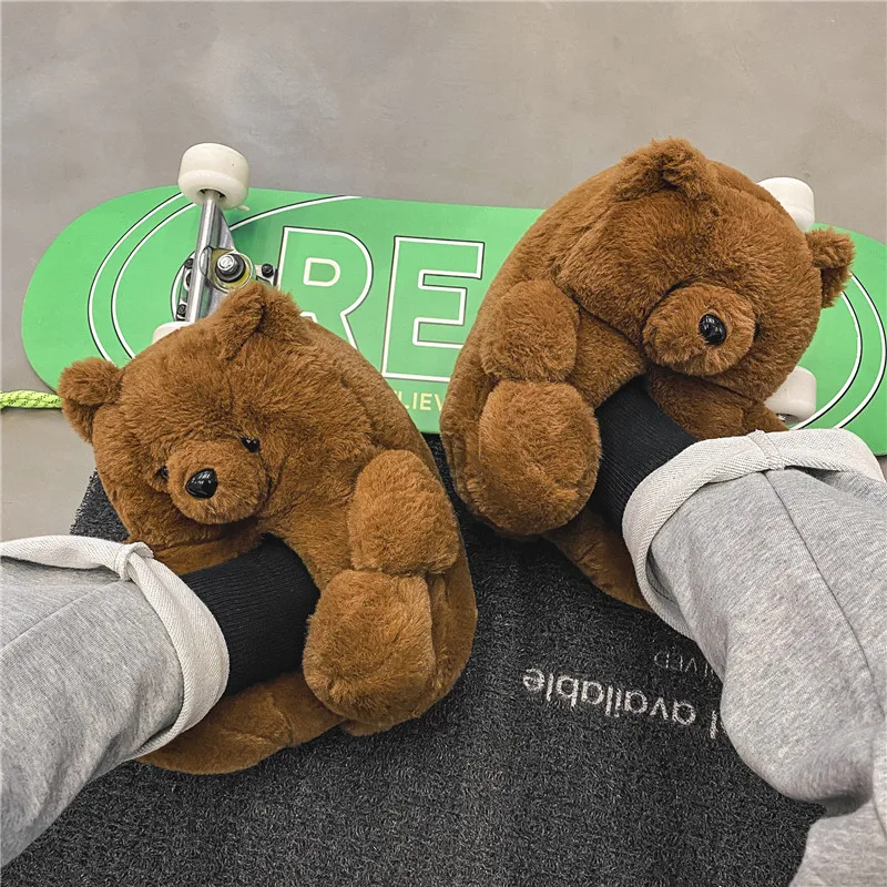Unisex Cartoon Warm Teddy Bear for Slippers Cute Multi-Color Cotton Indoor Home Shoes Flat Heels Waterproof EVA for Autumn/Winte