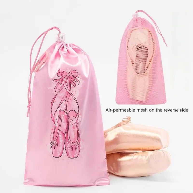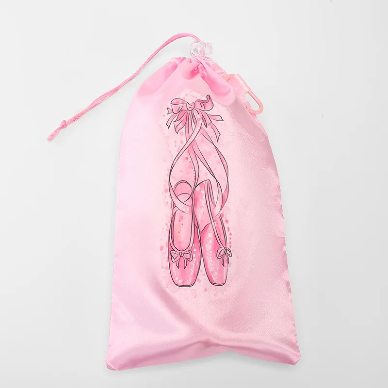 Women's Ballet Dance Shoes Storage Drawstring Bag Eco-Friendly Canvas Satin Breathable Dance Bag Customized for Pink Size