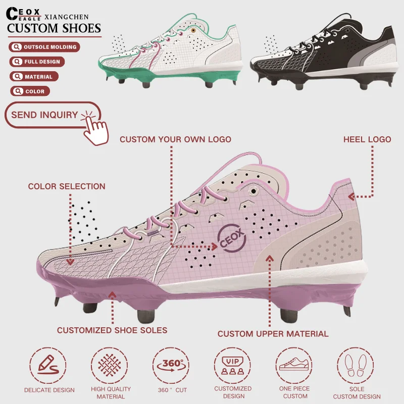 2026 New Odm Baseball Molded Cleats Reinforced Leather Youth Turf Spikes Mid Baseball Shoes Men Custom Baseball Cleats Spikes