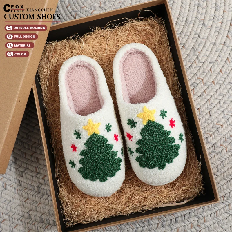 2026 Elk Santa Claus Fluffy Plush Cartoon for Slippers Custom Anti-Slip Winter Summer Autumn Home Wear Hotel Fur Wholesale Price
