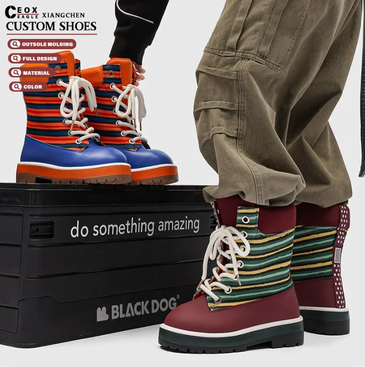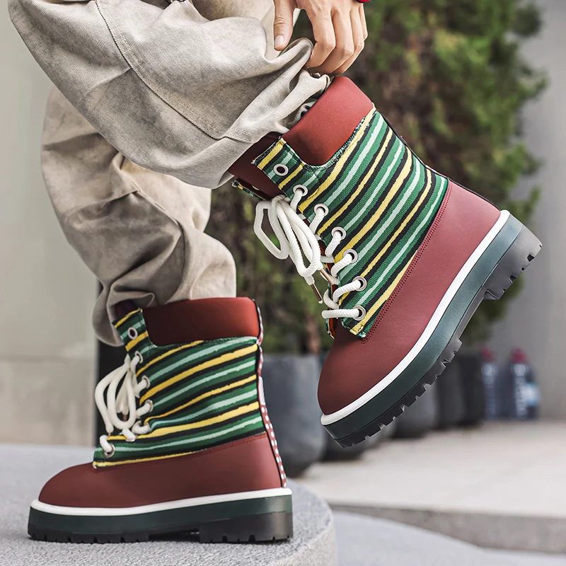Autumn's New High-Top Men's Workwear Casual Shoes Factory Lace-Up Height-Increasing Cushioning Contrasting Colors Walking Boots