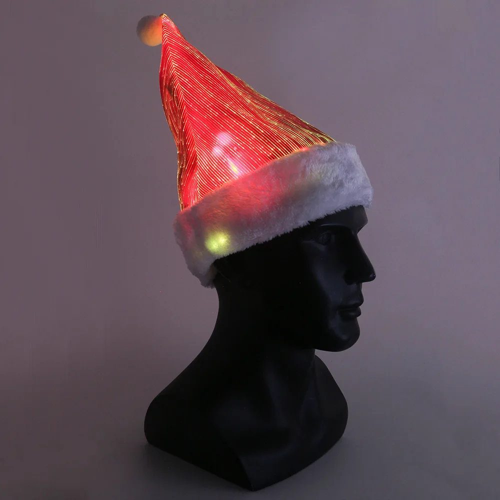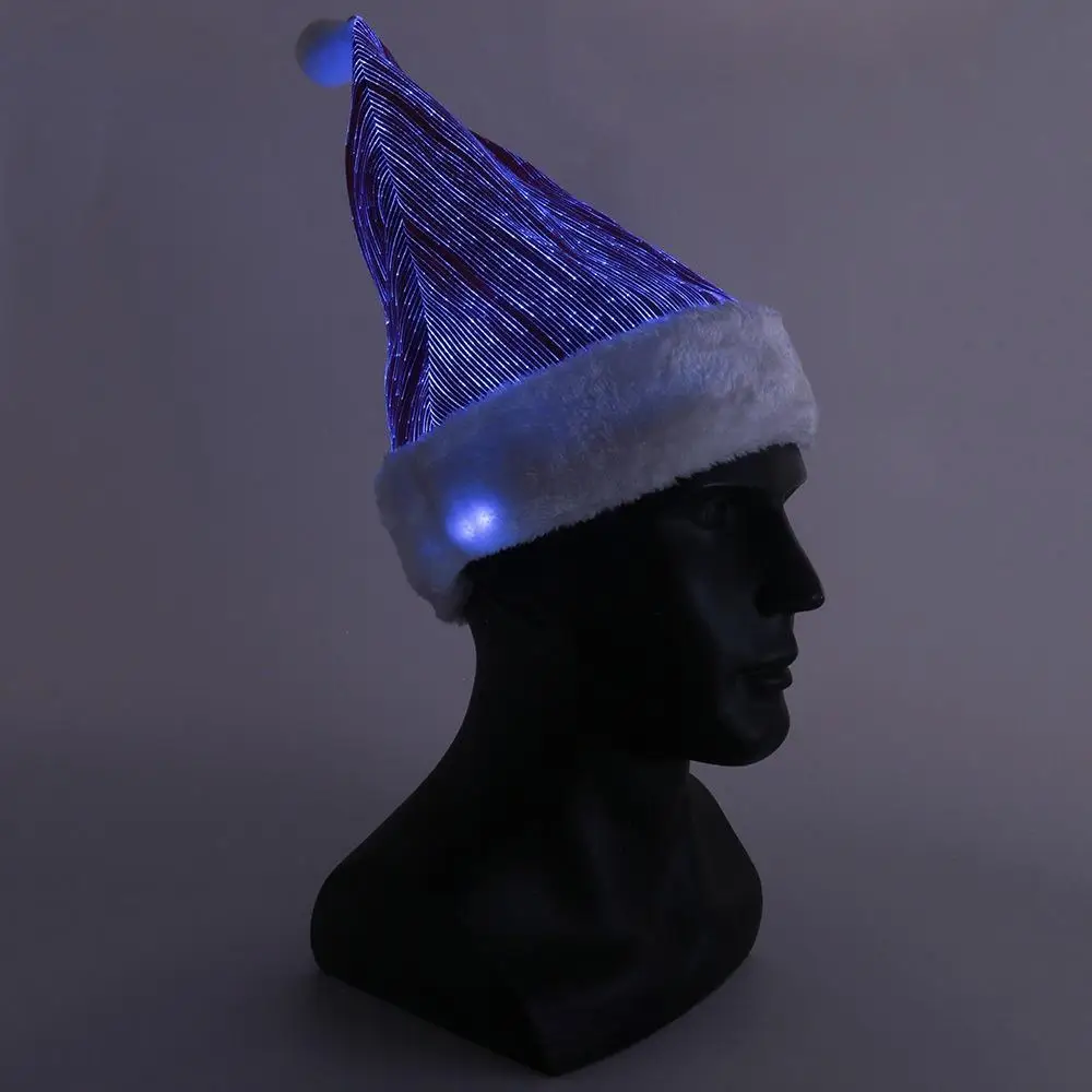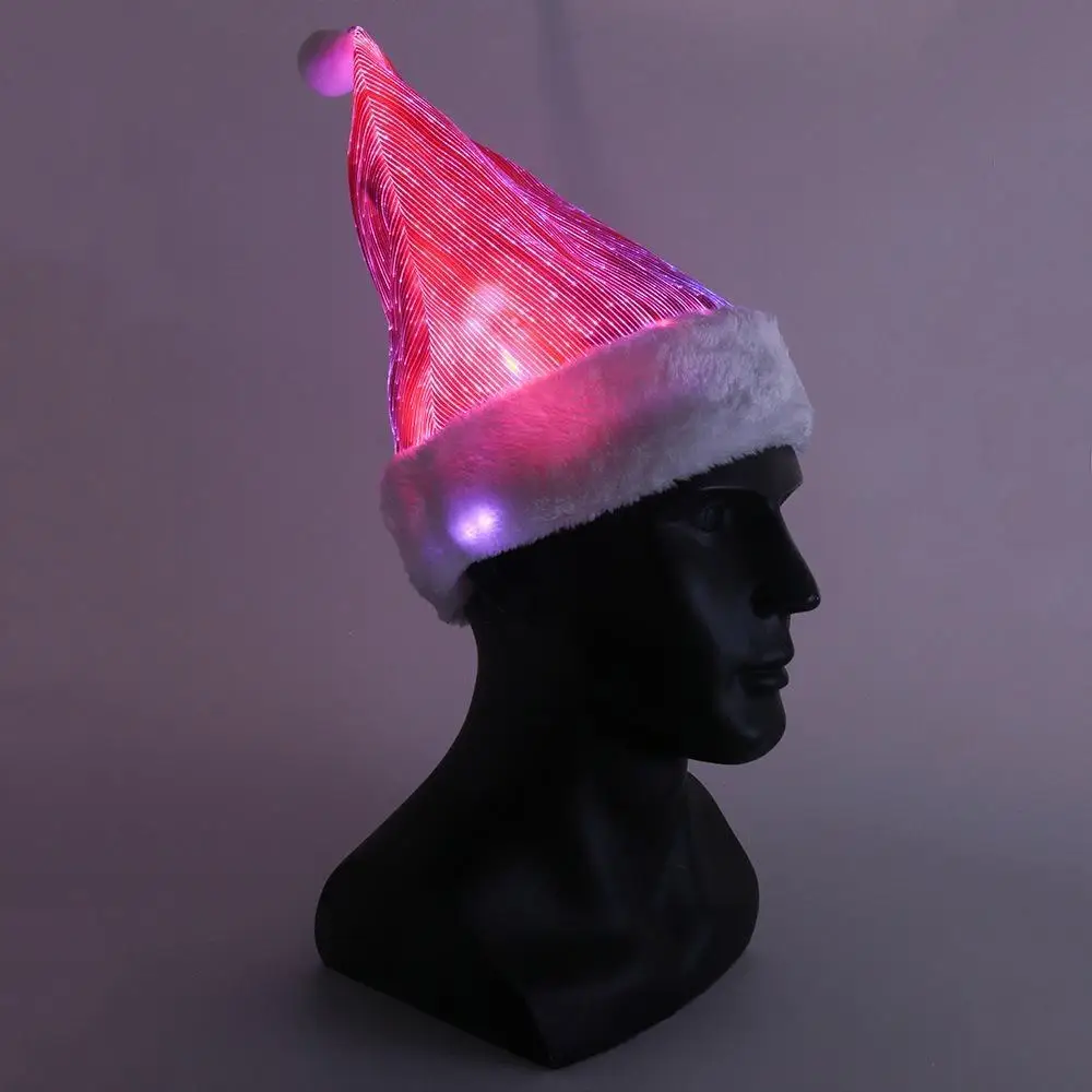 Christmas Hat Colorful LED Lights Plush Santa Hat Light up Velvet Comfort Luminous Hats for Party Supplies