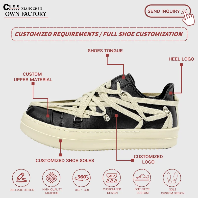 Top Quality Men Designer Skateboard Shoes Lace up Women Thick Soled Classic Genuine Leather Chunky Shoes With Crazy Straps