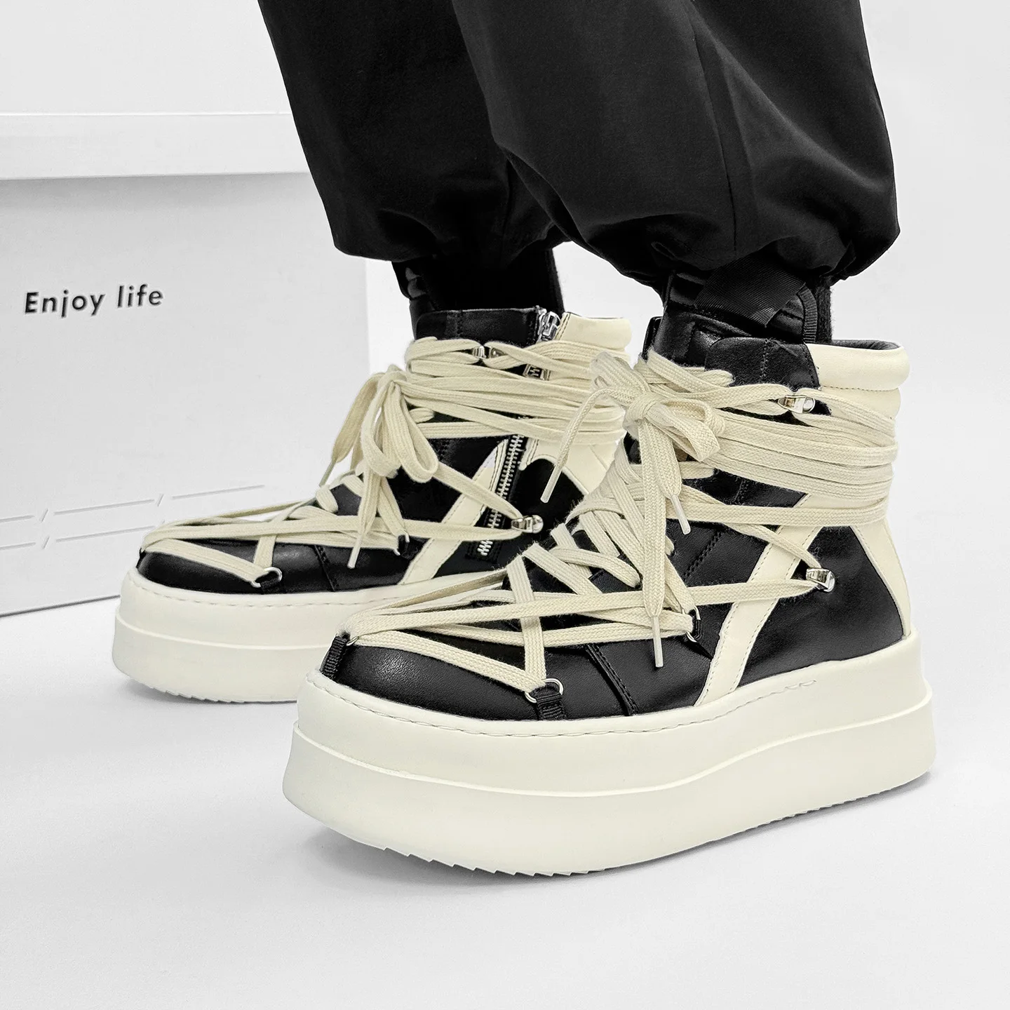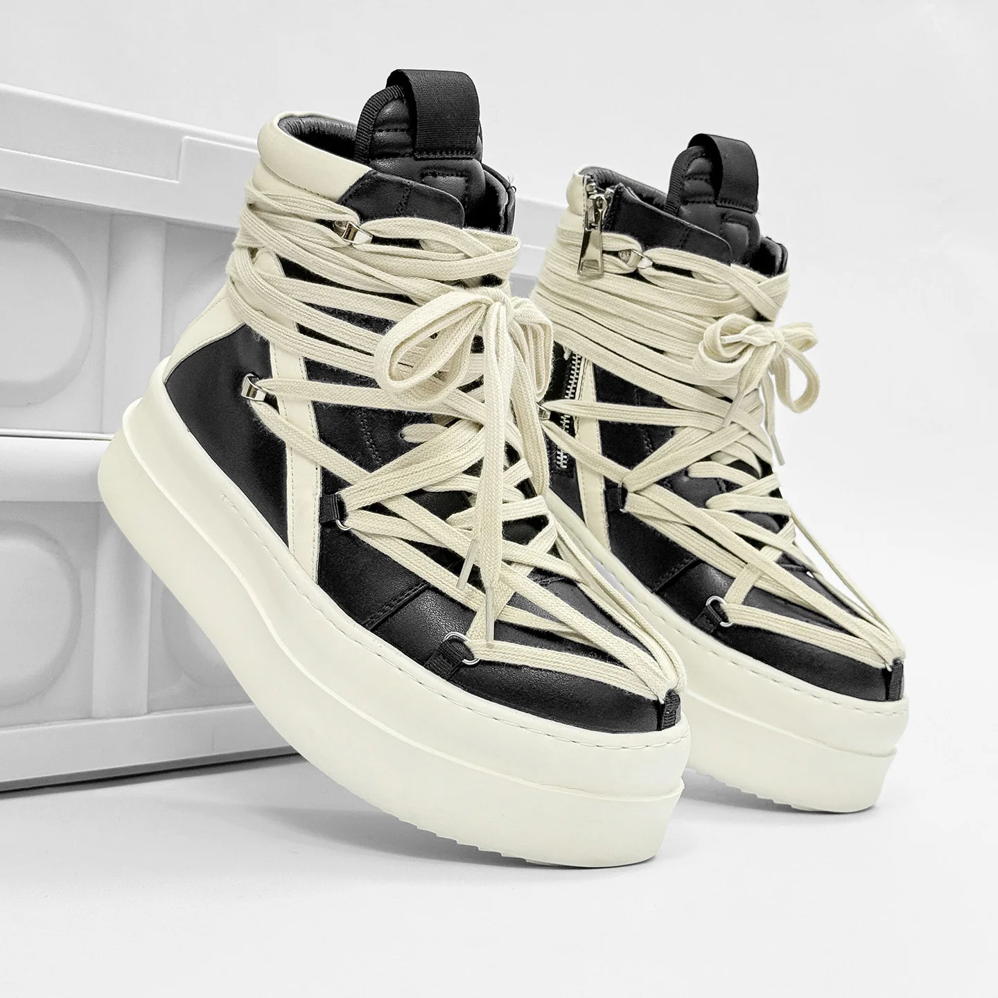 2026 New Trending Men's Skateboarding Shoes High Top Classic Leather Inverted Triangle Pentagram Hexagram Walking Style Shoes
