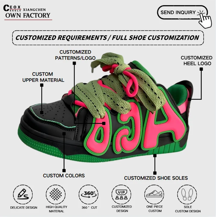 Custom Logo 2026 New Trendy Men's Chunky Platform Skateboard Shoes Men Designer Casual Sneakers Custom Sneakers