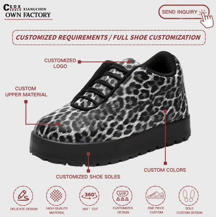 Custom Brand Shoes Male and Female Exclusive Best Quality Anti Slip Custom Genuine Leather Height Increasing Fashion Bread Shoes