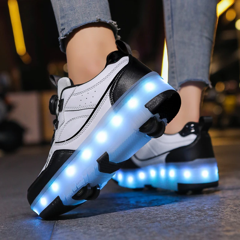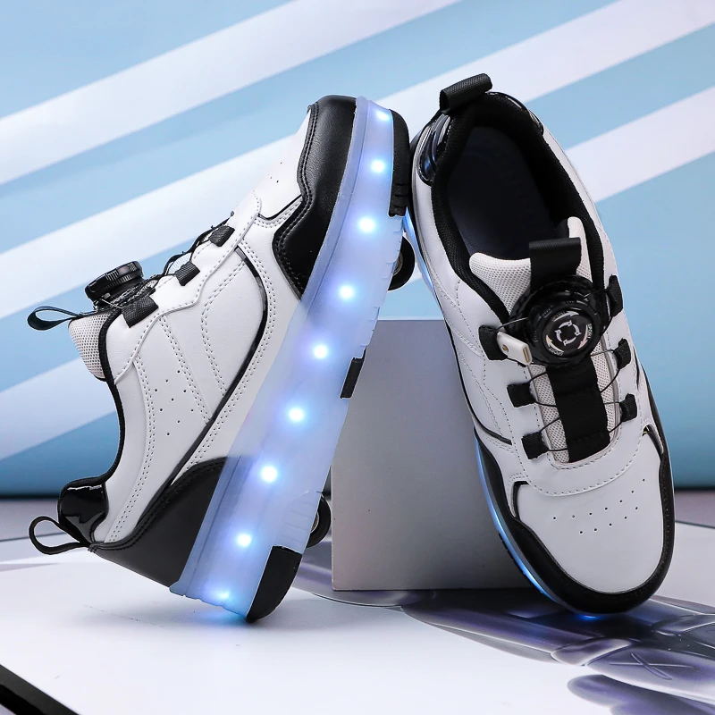 Patines De 4 Ruedas Con Luzkids Girls Sneaker LED Light-Up Shoe Charms for Kids Deformed Sports Shoes and Roller Skates Shoes