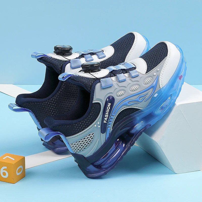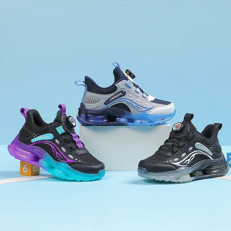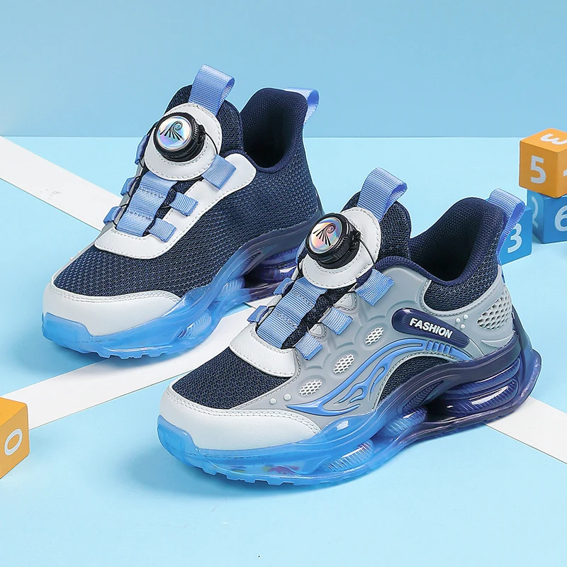 Kids Sports Shoes Rotating Buckle Basketball Shoes Shock Absorption Air Cushion for Boys for Autumn Winter