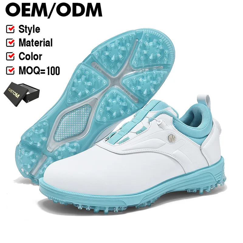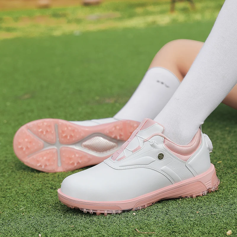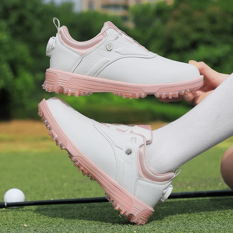 New Golf Comfort Waterproof Automatic Knob Retractable Laces Non-slip Outdoor Golf Shoes for Women