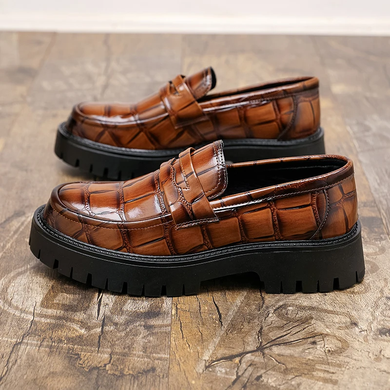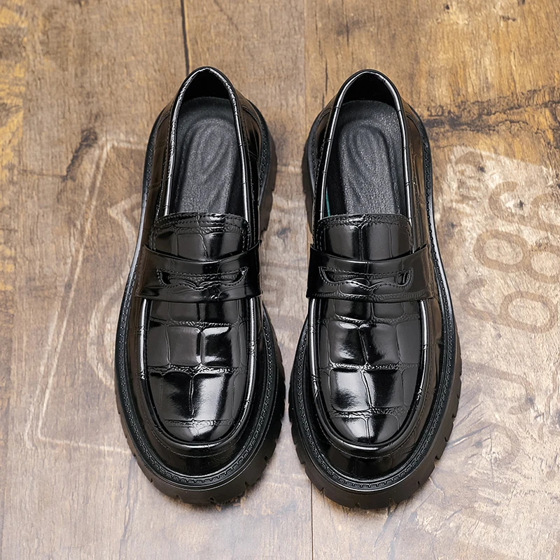 Thick Sole Height Increasing Formal Business Durable Steel Round Toe Men Dress Shoese Thick-soled Heightened Leather Shoes