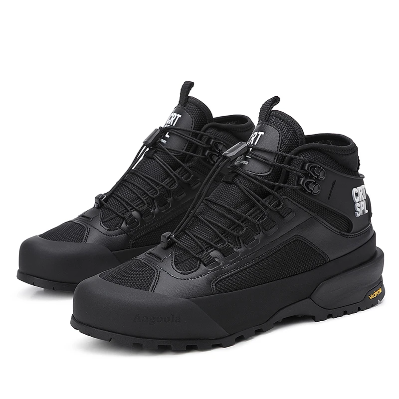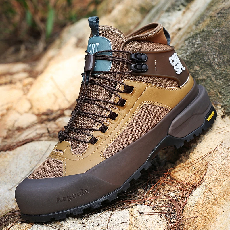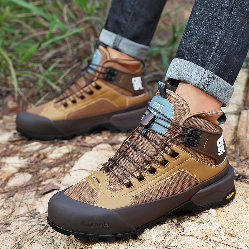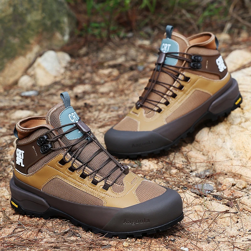 Autumn Winter Men's Basic High Top Leather Boots Comfortable Outdoor Split Leather Ankle Boots Waterproof Mountain Hiking Shoes