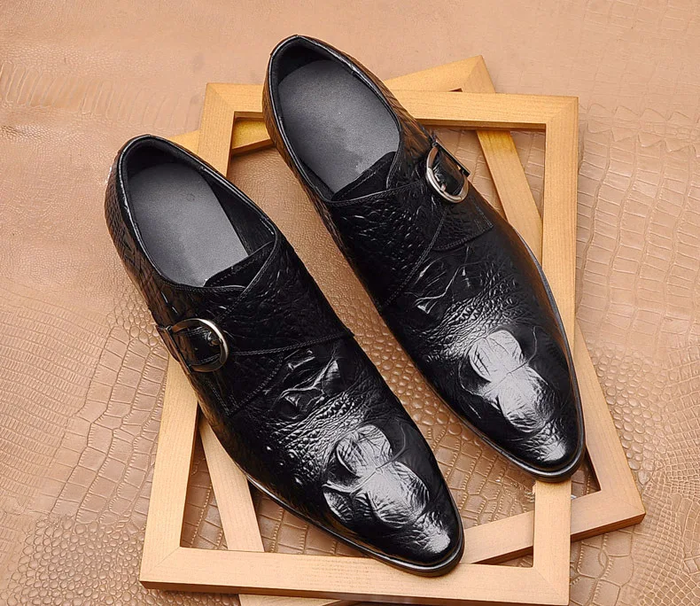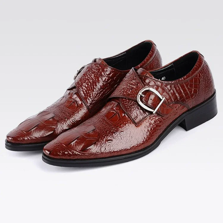 Men's Large Size Pointed Toe Slip-On Business Dress Shoes with Buckle Strap Lightweight Rubber Outsole for Office & Career