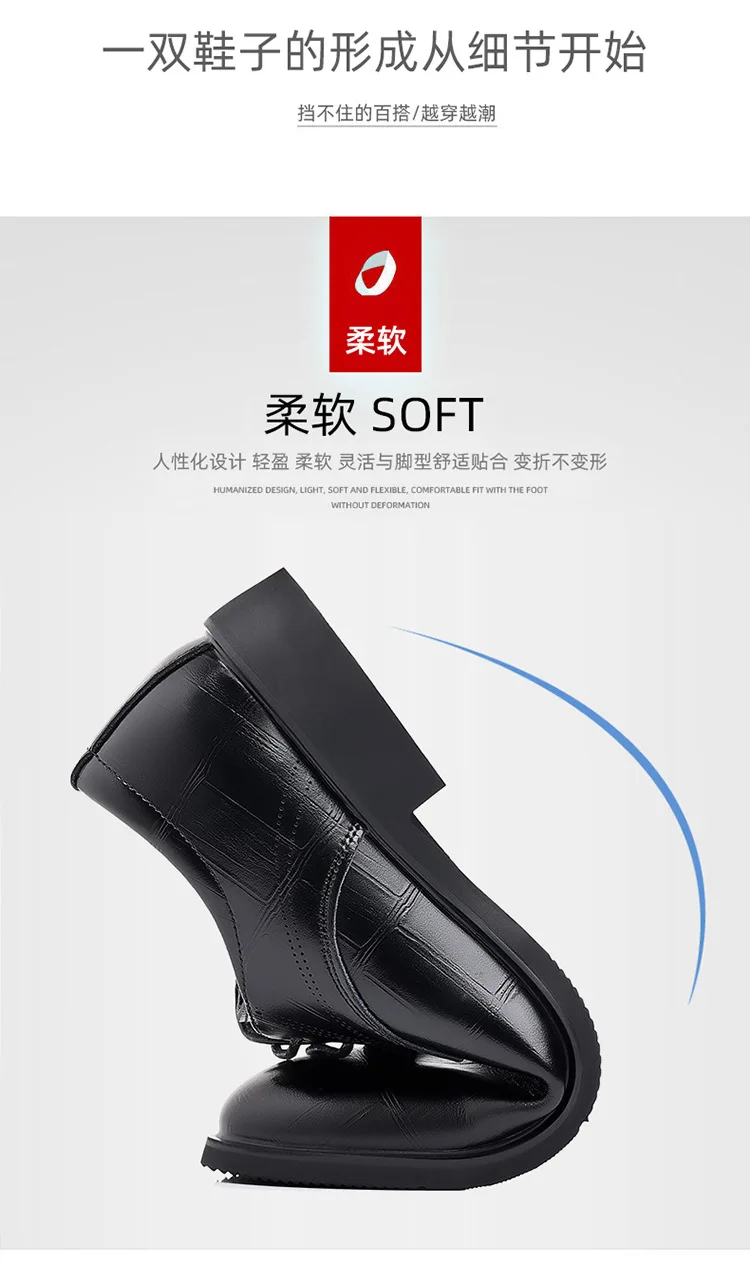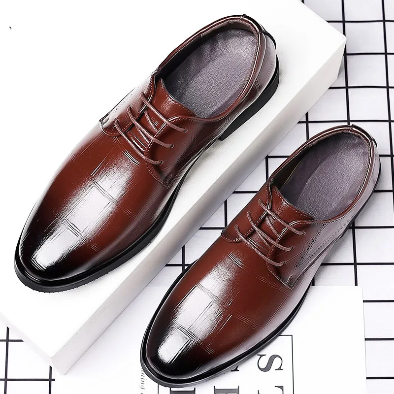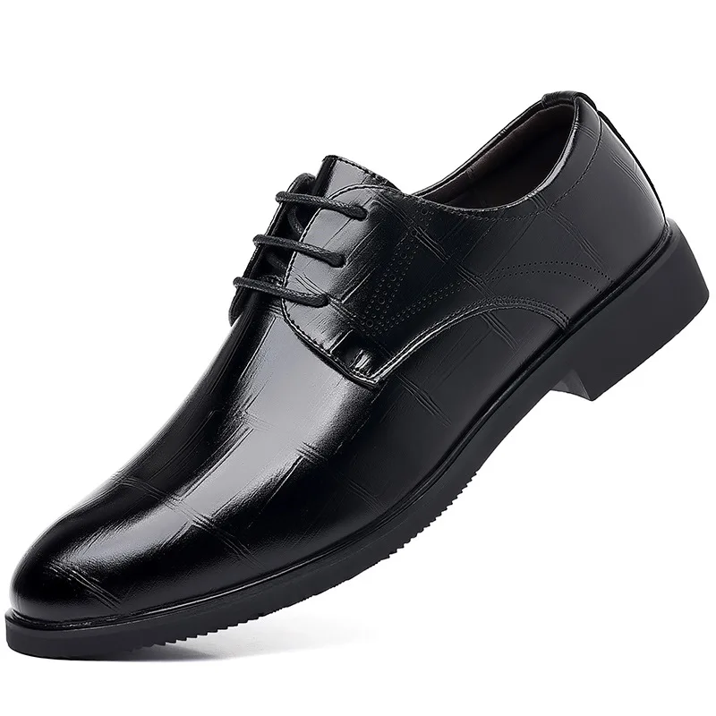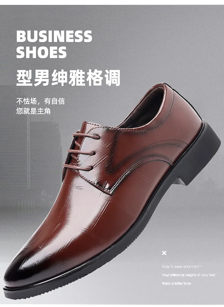 Men's British Style Black Trendy Shoes Casual Business Dress Pointed Toe Large Size Pu Leather Shoes for Men