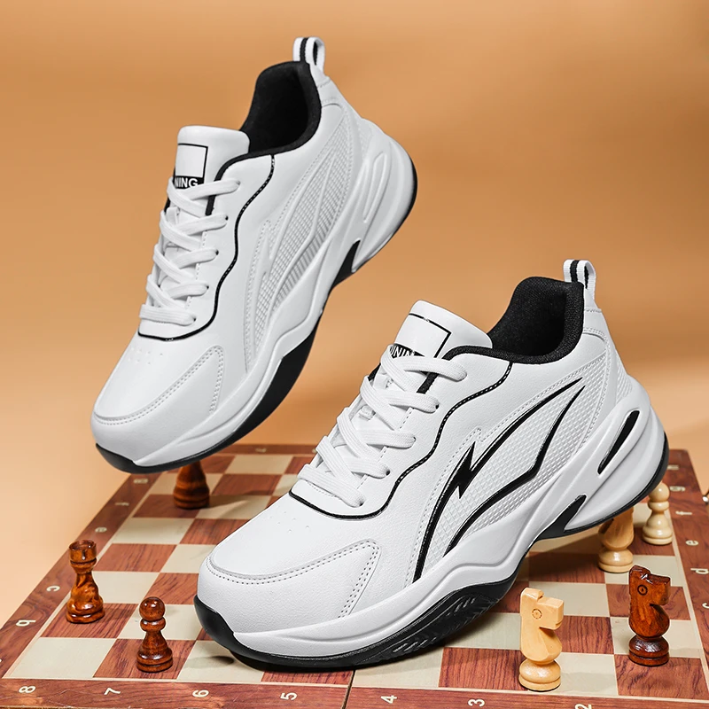 Leather Men's Unisex Casual Running Shoes Round Feature EVA Insole PU Bottom Professional Badminton Shoes