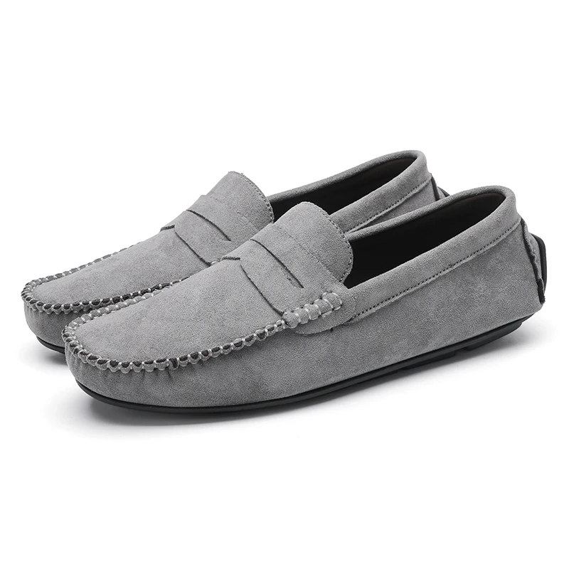 Spring and Summer New Men's Frosted Suede Sloping Heel Large Size Pea Shoes Moccasin Driving Loafers Suede Leather Boat Shoes