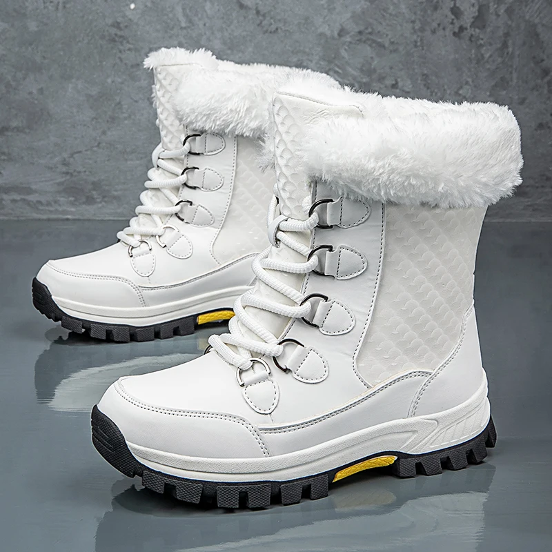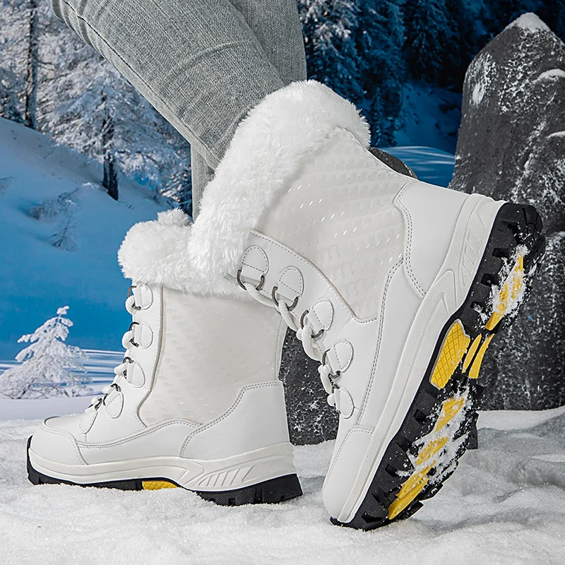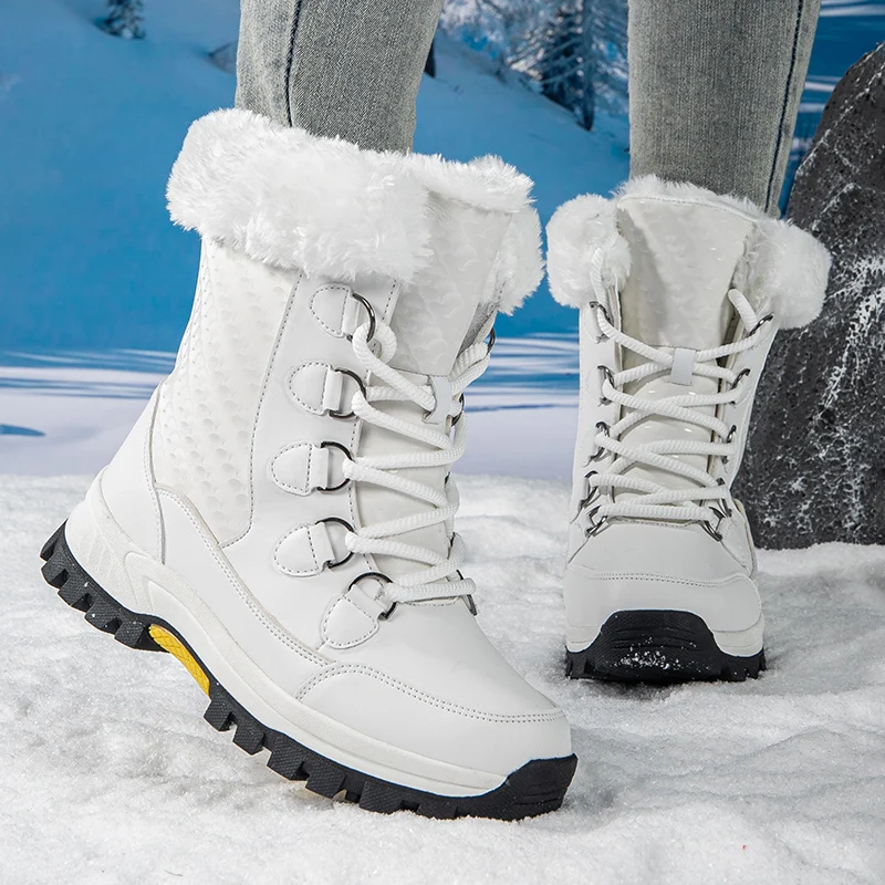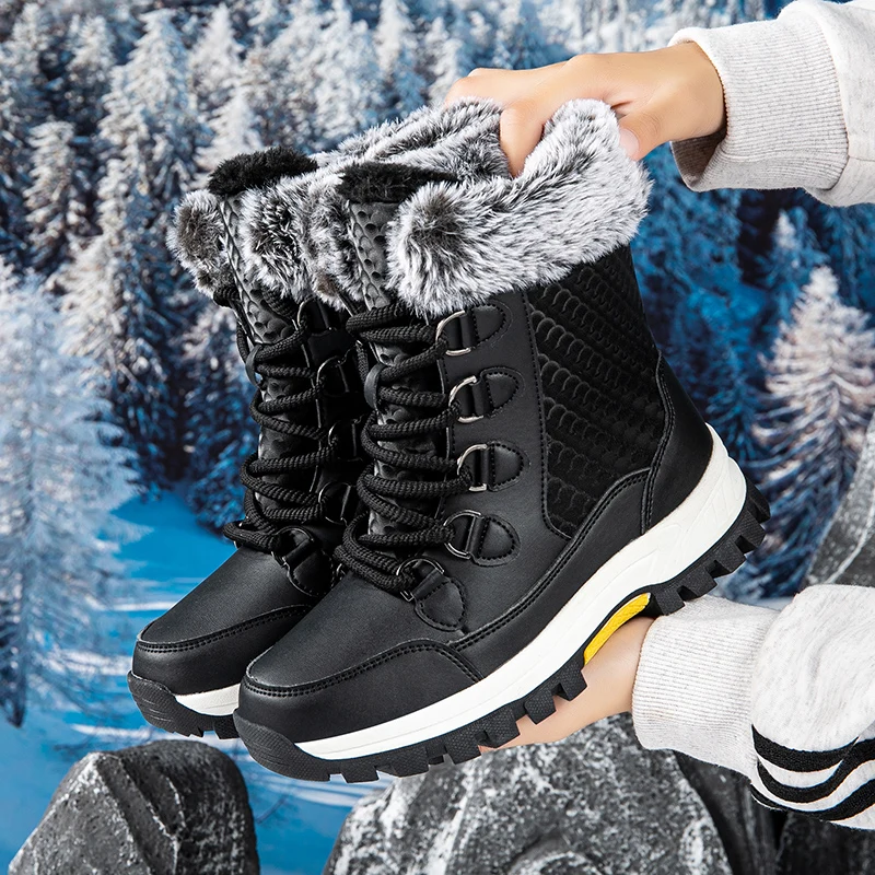 Winter Outdoor Travel Waterproof Women' s Snow Boots Anti slip Thickened Warm High Top Women's Mid Length Snow