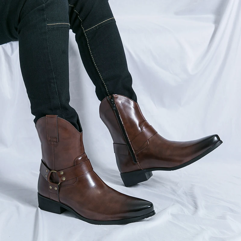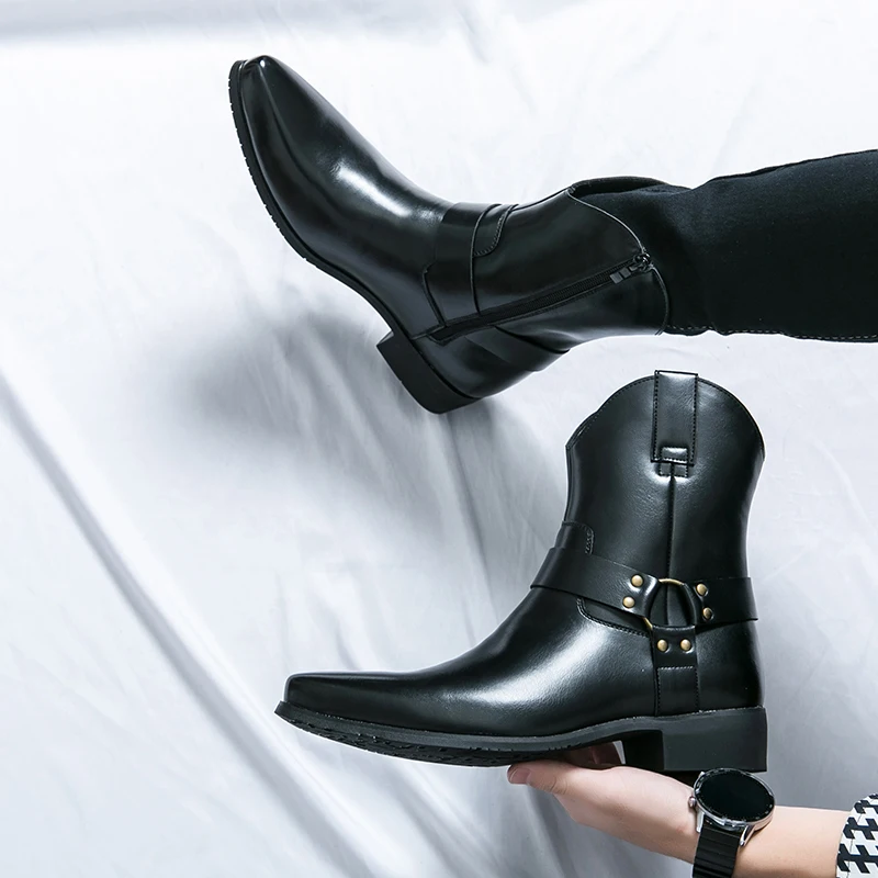 Good Quality Winter Plus Size Men's Ankle Boots Shoes Short Boots Zipper Casual Pu Leather Boots for Men