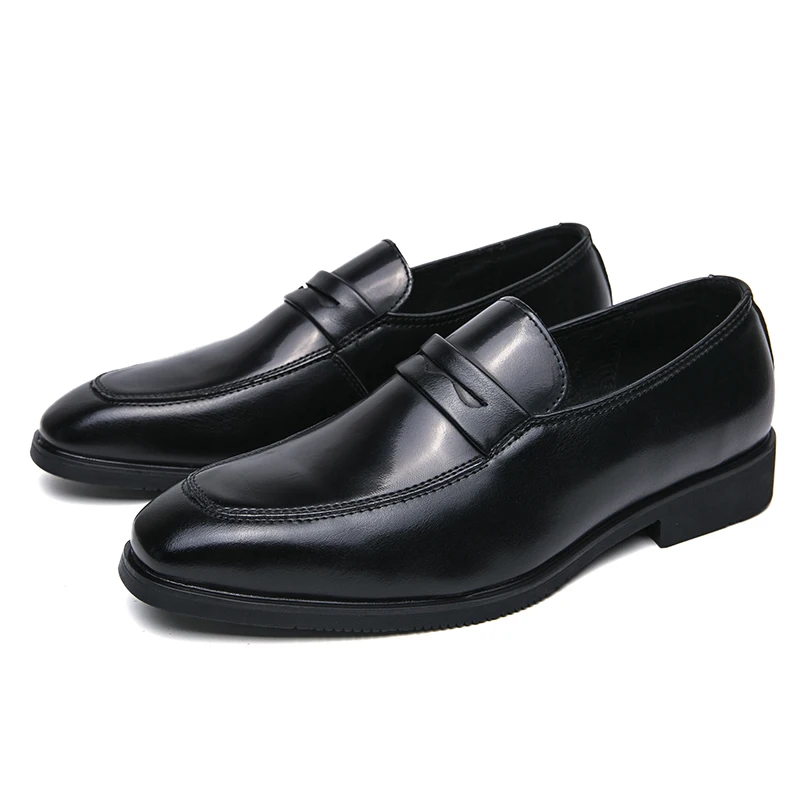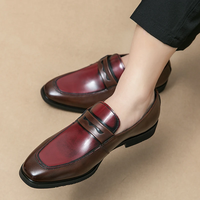 Man Flats Casual Leather Slip on Shoes Oxford Dress Shoes Round Toe Wedding Shoes Men Business Formal Loafers