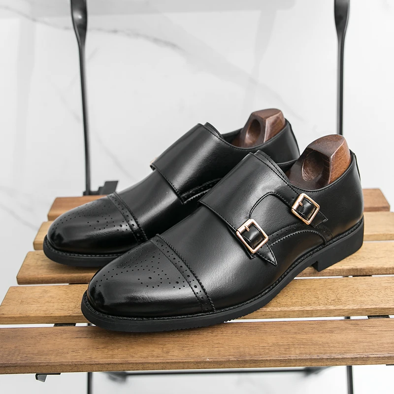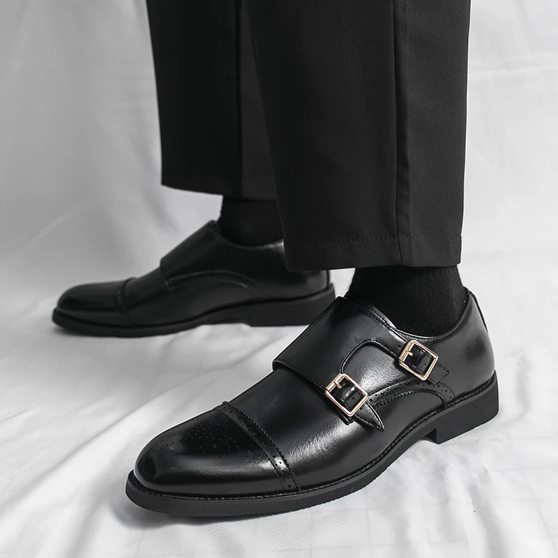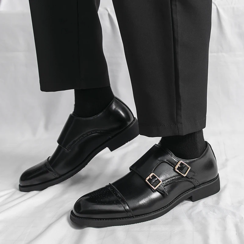 New Products Buckle Strap Fashion Style Men's Business Dress Shoes Italian Genuine Leather Shoes Oxfords