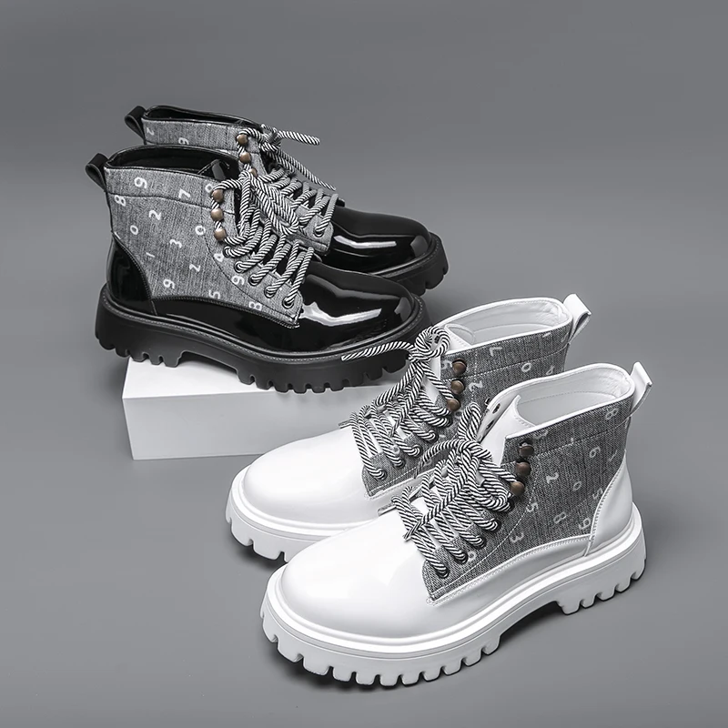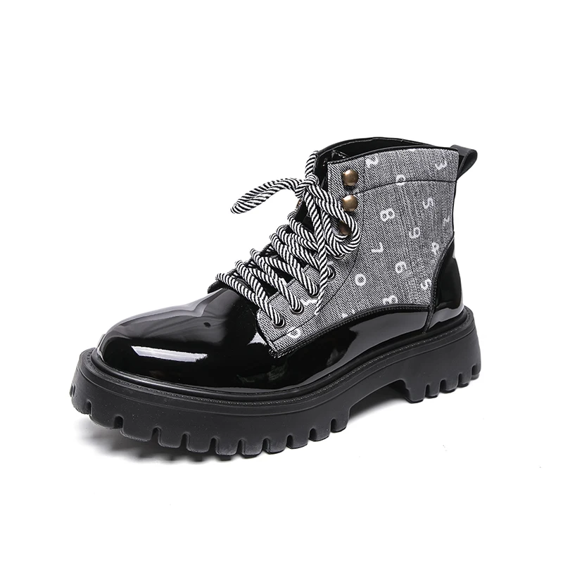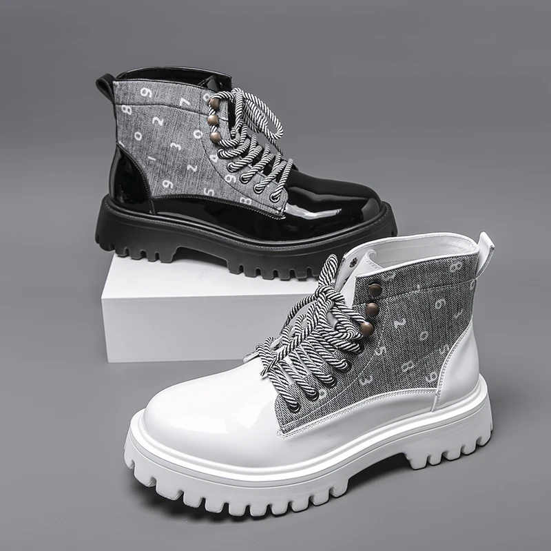Ankle Business Leather Boots Platform Leather Boots British Style Shiny Surface Fashionable Casual Short Boots for Men