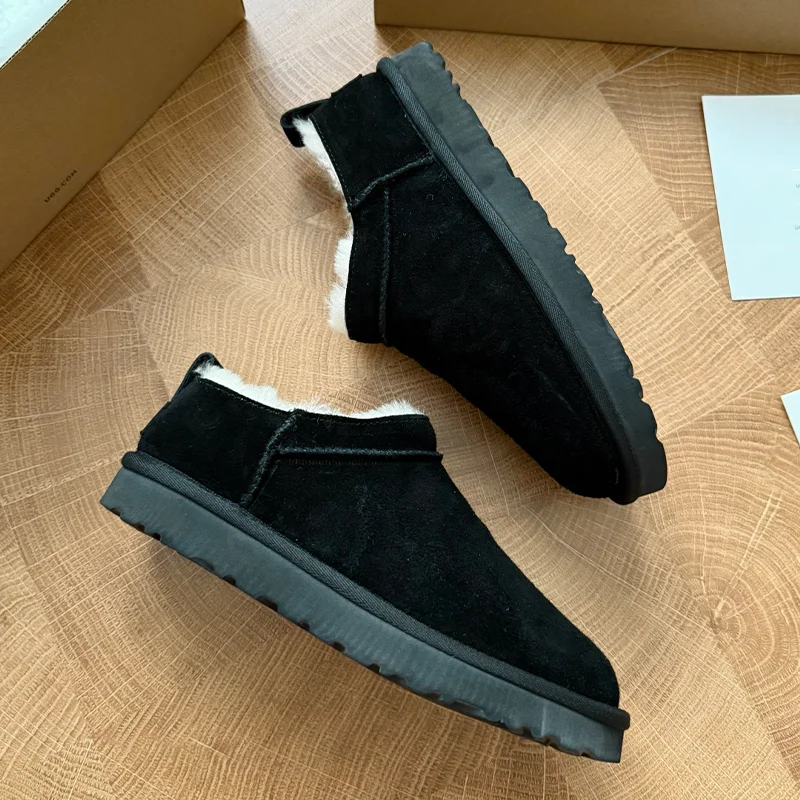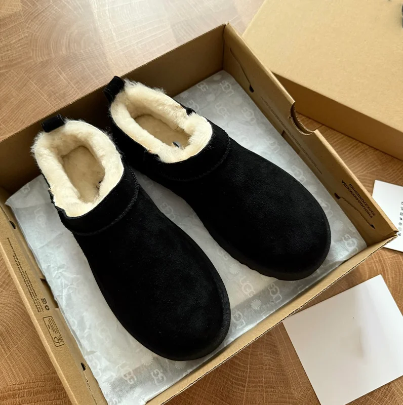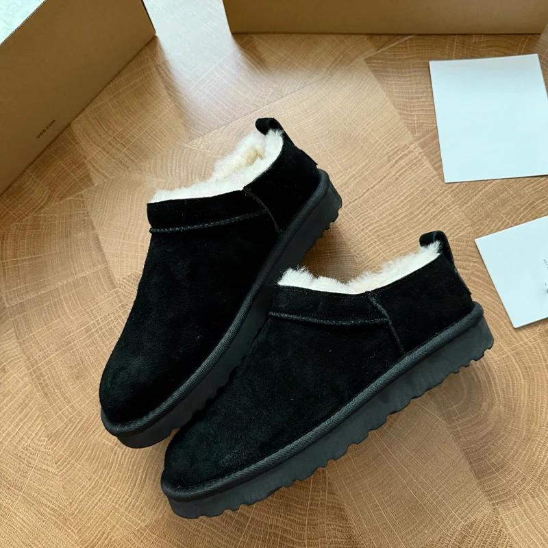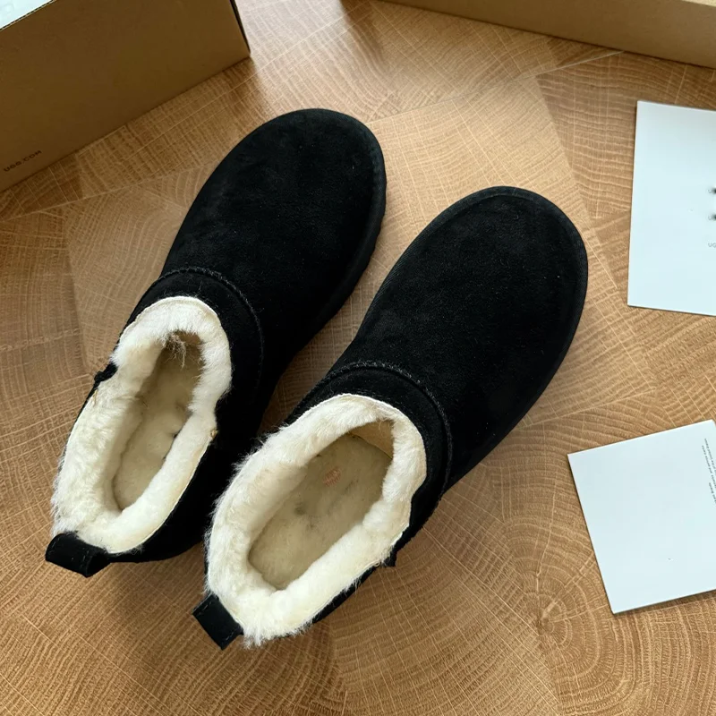 2026 Thick-soled Women's Snow Boots Stylish Winter Genuine Leather Fur Ankle Bootie Platform Plush Warm Rubber Outsole