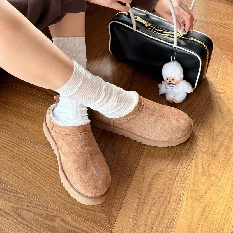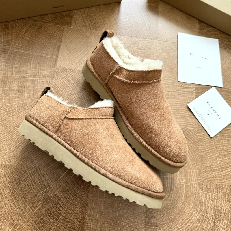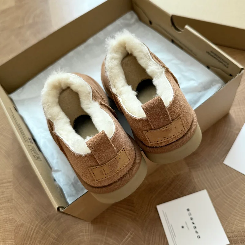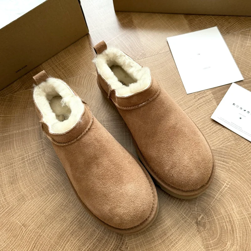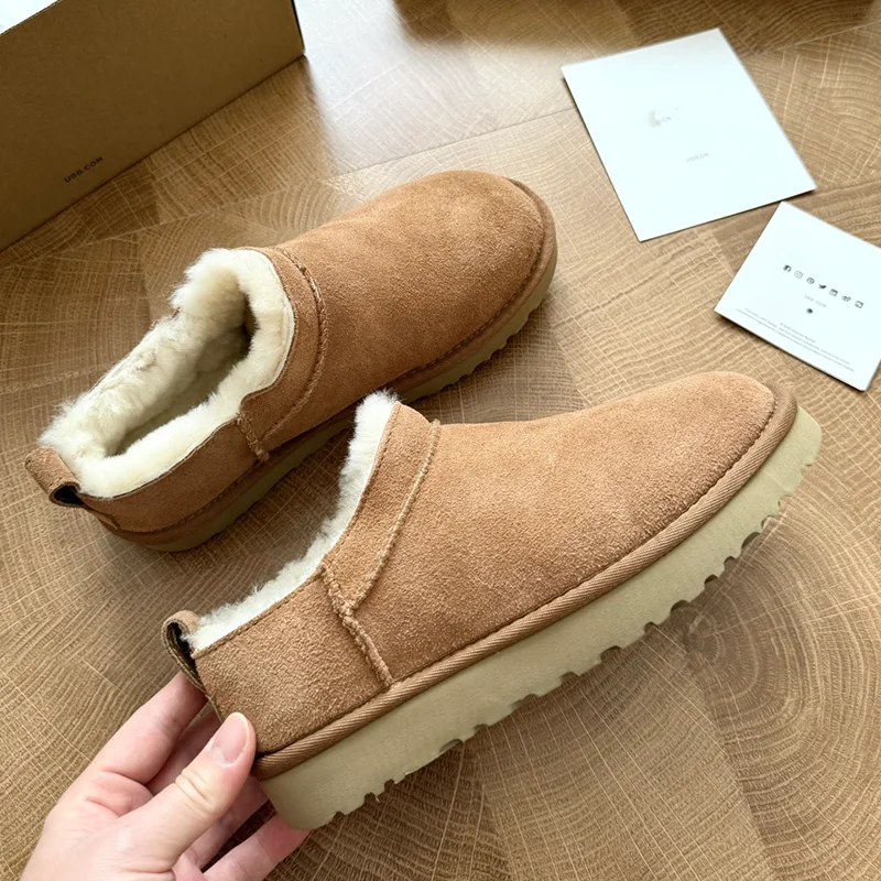 Custom High Heel Thick Sole Cow Suede Sheepskin Fur Buckle Ankle Unisex Warm Winter Snow Boots