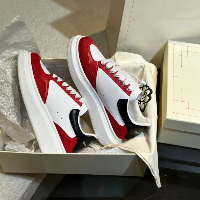 White Genuine Leather Lace-Up Winter Platform Casual Sports Shoes with Rubber Midsole & Outsole for Unisex Couple Board