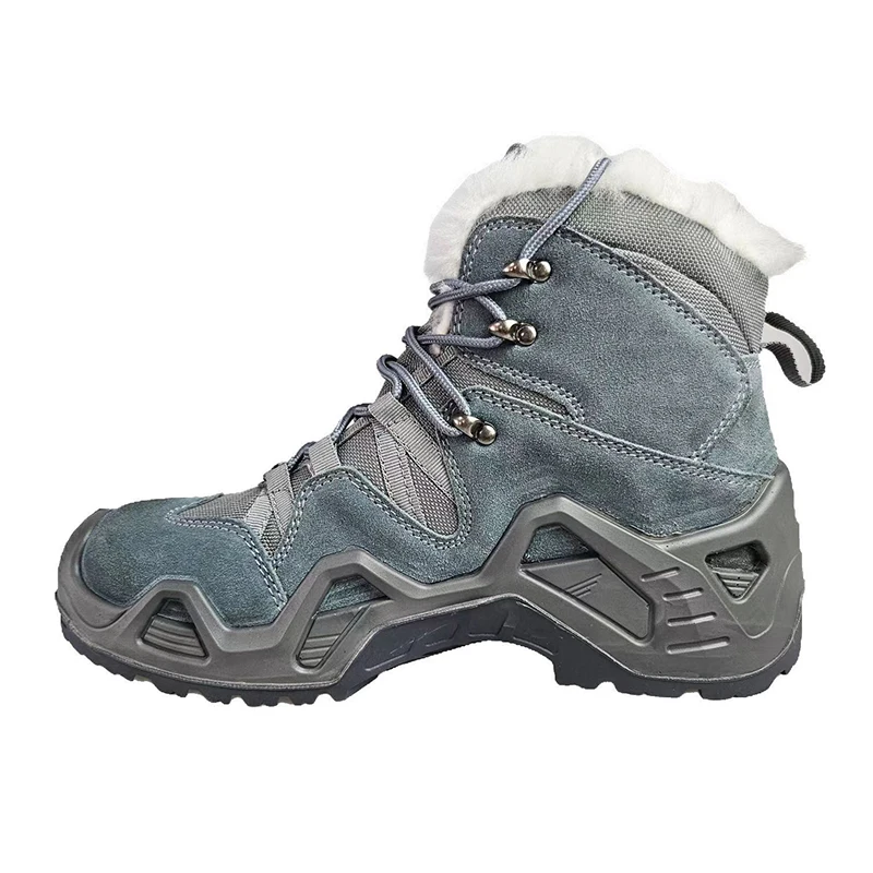 Suede Cow Leather Mid top Work Footwear With Fur To Keep Warm In Winter Anti smash Puncture proof Anti Slip Safety Shoes