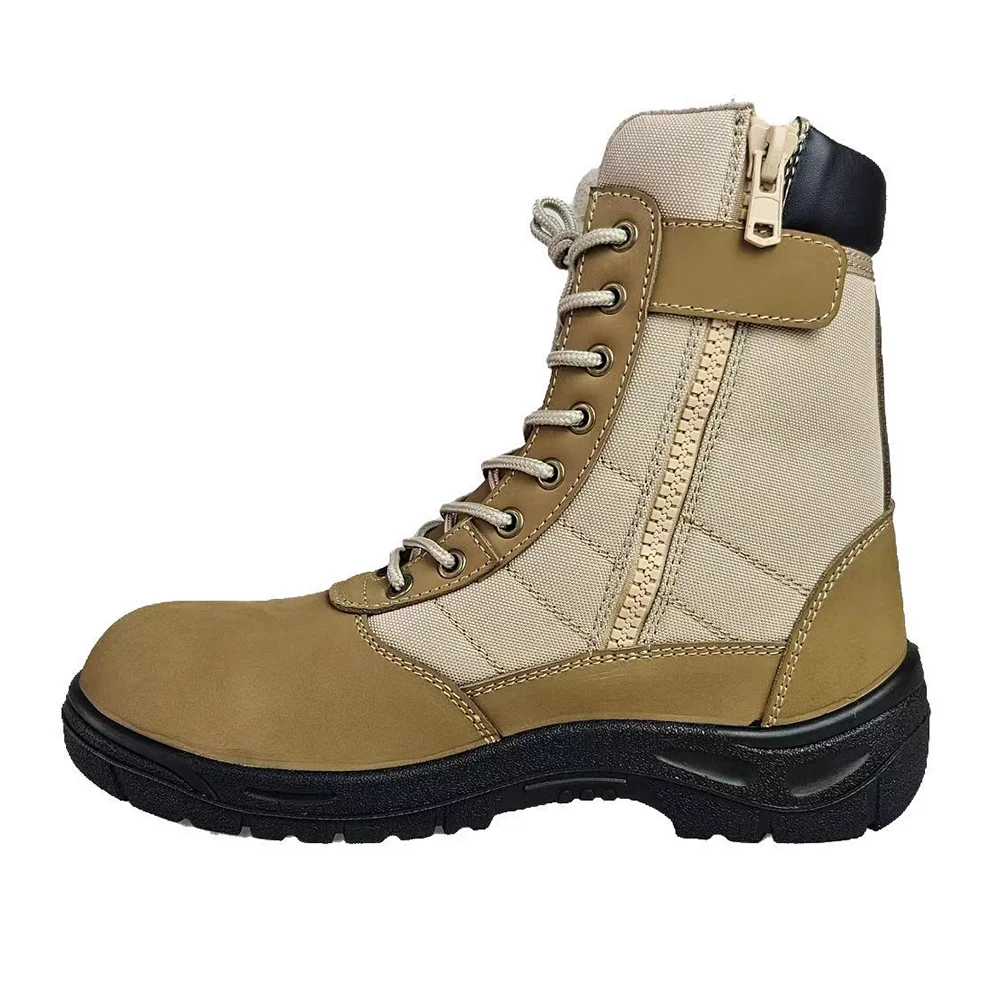 Hot Selling Mid top Lace-up with Zipper Outdoor Boots Nubuck Leather Hiking Shoes Anti slip Walking Footwear Trail Shoes For Men