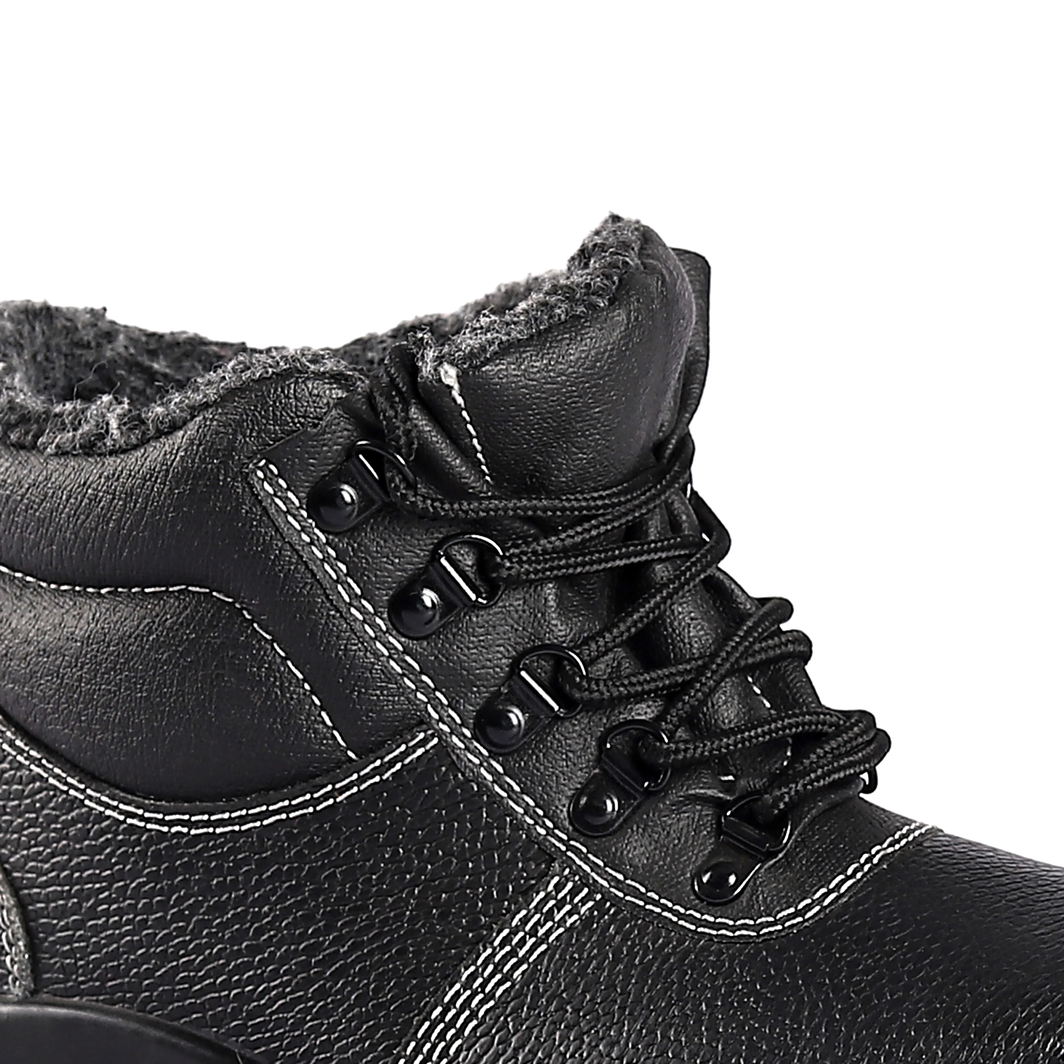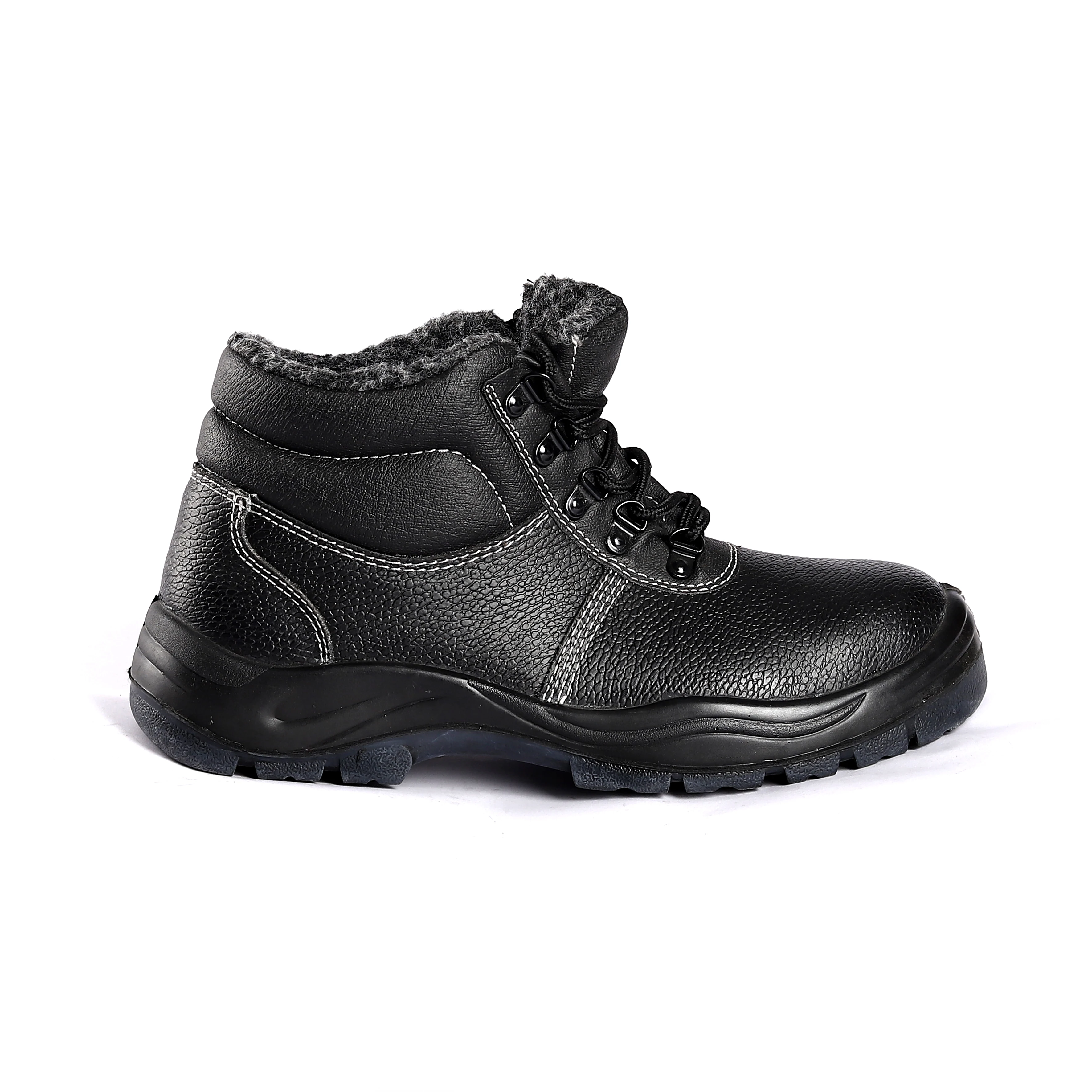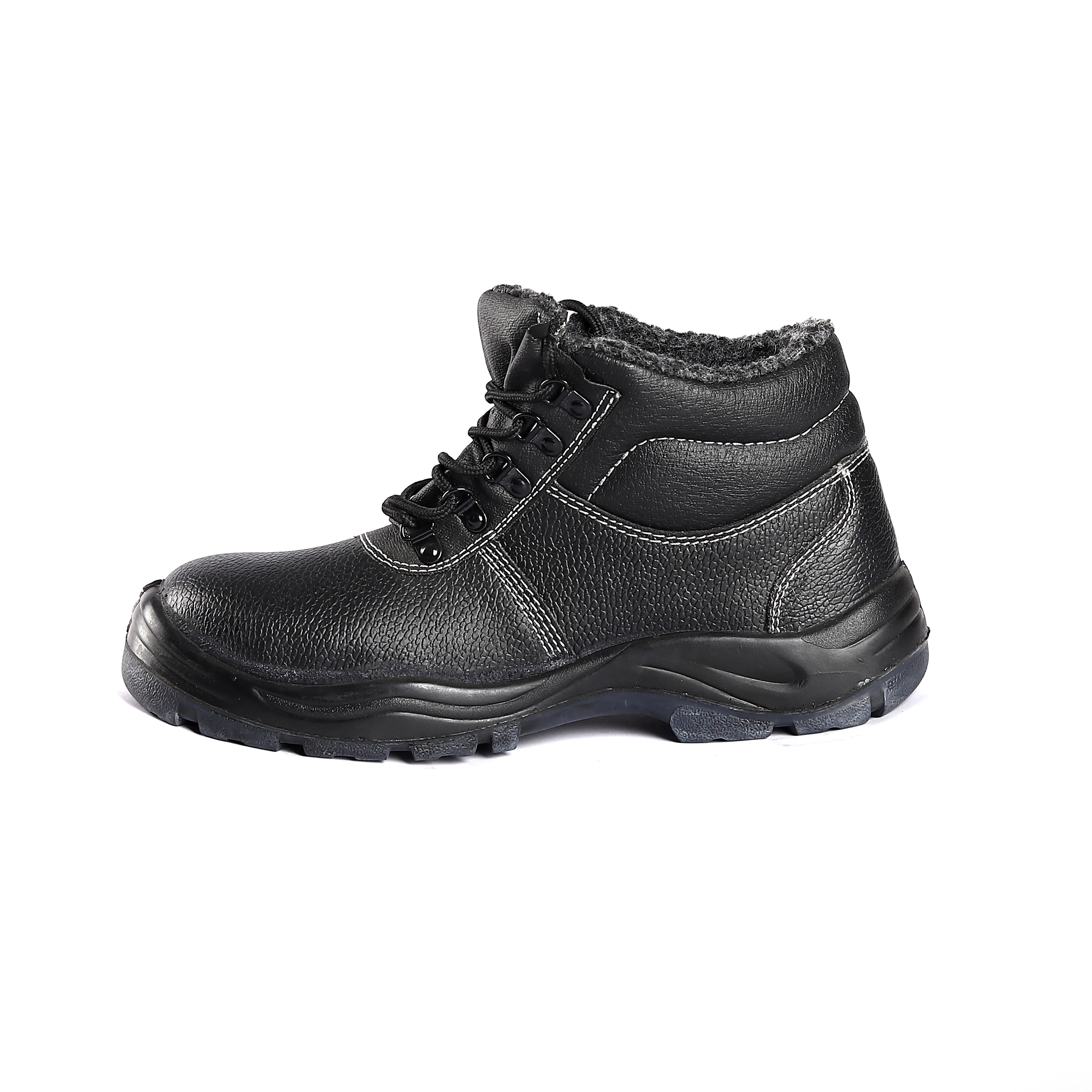 Wholesale Anti Smash Puncture-proof Safety Shoes with Fur Mid Top High Quality Keep Warm Work Footwear in Winter Can OEM