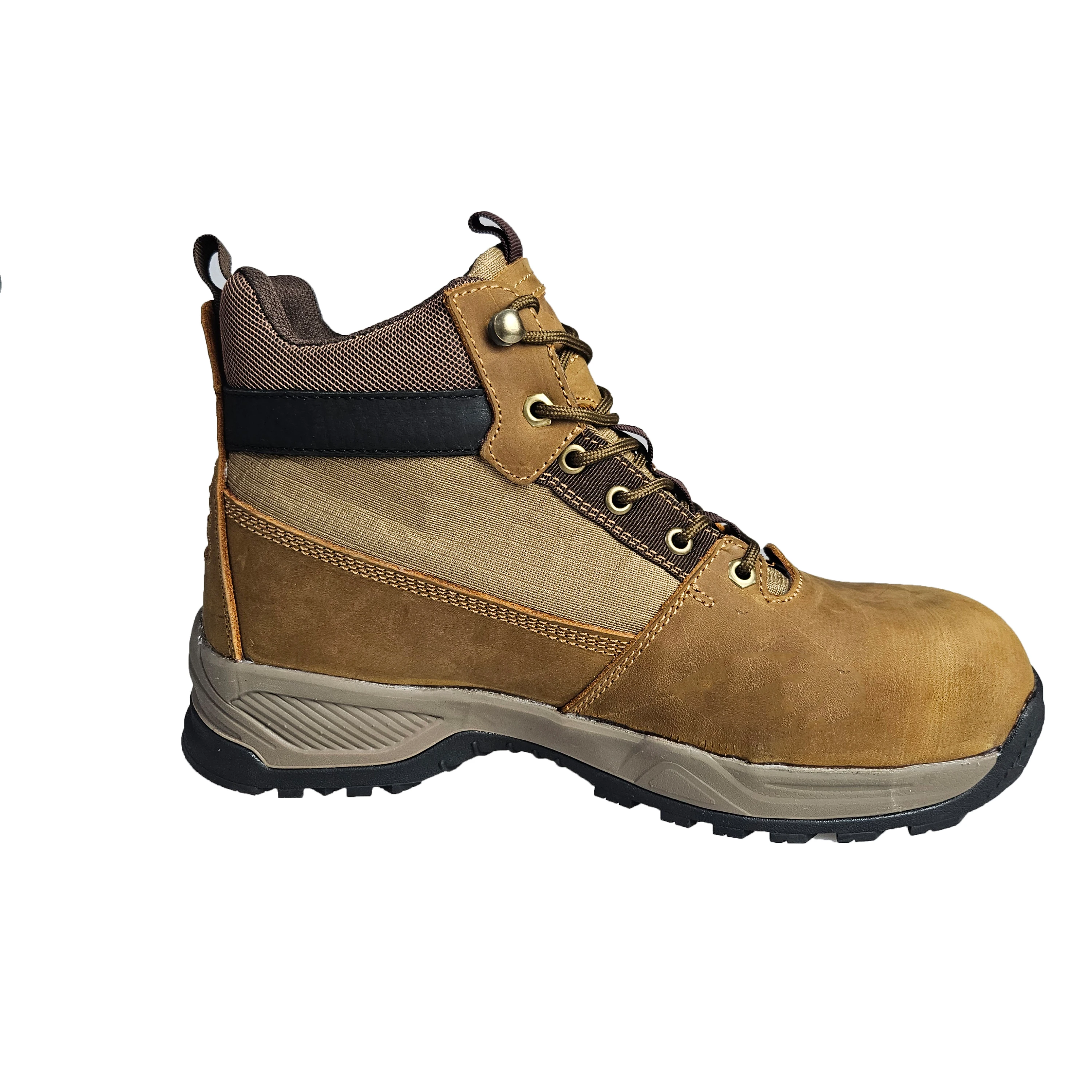 Beige CE Anti-Puncture Waterproof Steel Toe Leather Work Shoes Women Safety Secure Non-Slip Mid Cut Shoes for All Season