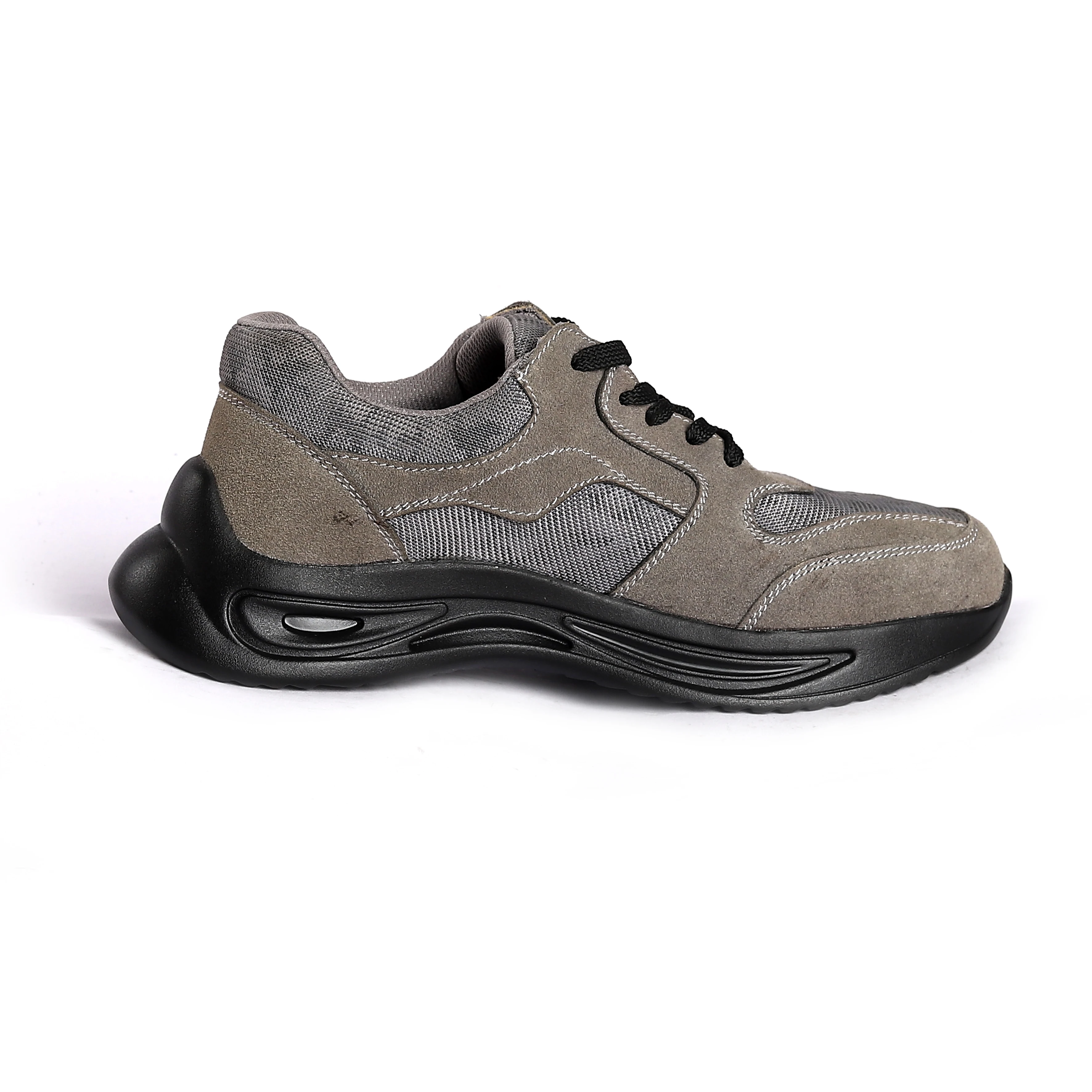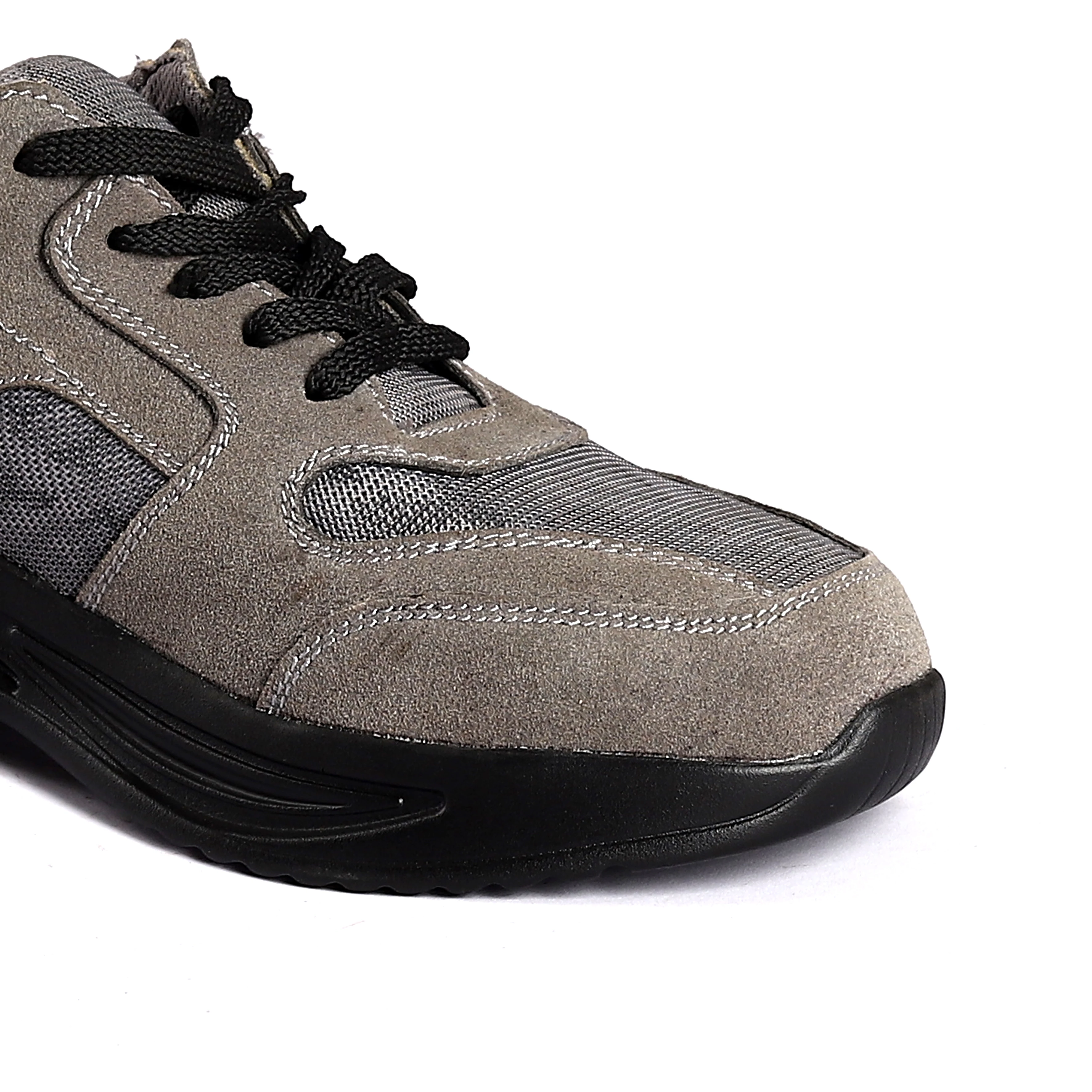 Suede Cow Leather and Mesh Breathable Work Casual Shoes Anti Smash Anti Puncture Safety Sneakers Lace-up Lightweight Labor Shoes