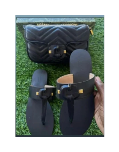 Luxury Brands Ladies Comfortable Designer Flat Sandals Shoes and Handbags Matching Sets for Women Made in China