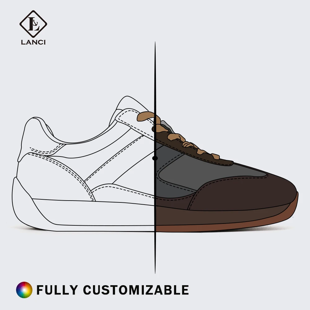 LANCI Custom Shoes Manufacturers Unborn Calfskin Mens Leather Shoes Anti-slippery Luxury Sneakers Skateboard Shoes